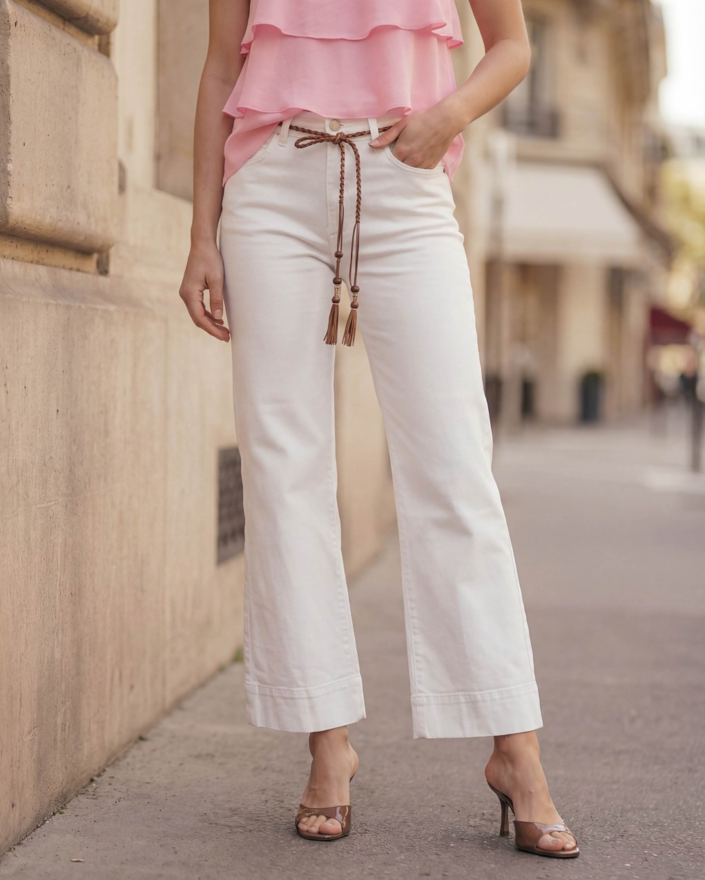 Pantaloni donna a gamba ampia in denim con lunghezza alla caviglia, perfetti per un look casual-chic contemporaneo. Realizzati in tessuto denim di qualità, presentano vita alta con chiusura a bottone e tasche frontali funzionali. Il taglio wide leg e la lunghezza cropped creano una silhouette moderna e versatile, ideale per valorizzare la figura con vestibilità comoda. Capo essenziale per outfit quotidiani che uniscono stile e praticità.