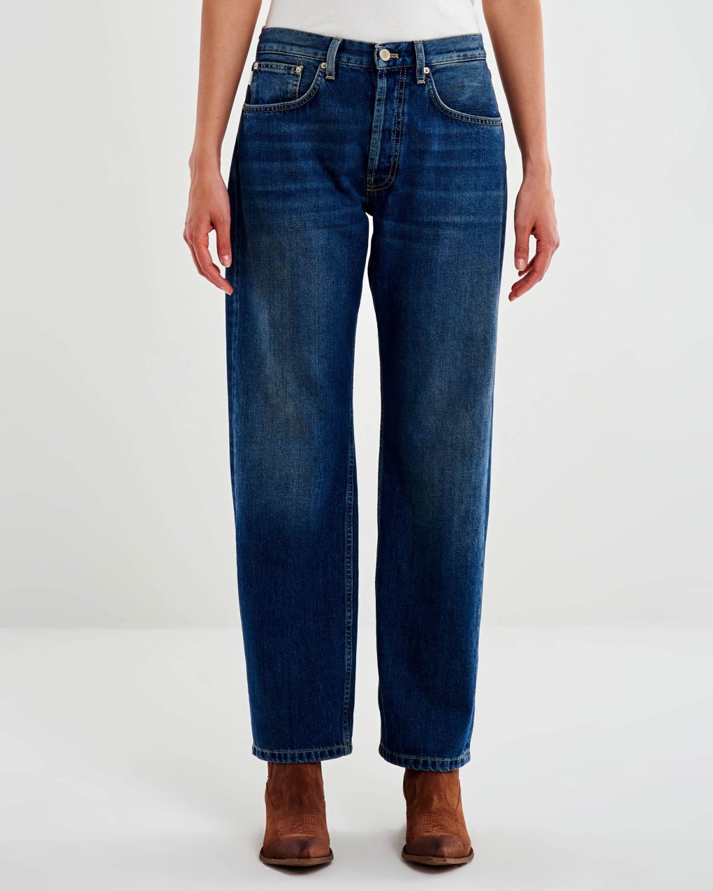 Jeans Emy straight fit a vita media. Modello cinque tasche. Chiusura con zip e bottone metallico. Gamba dritta.