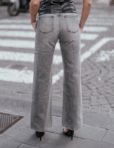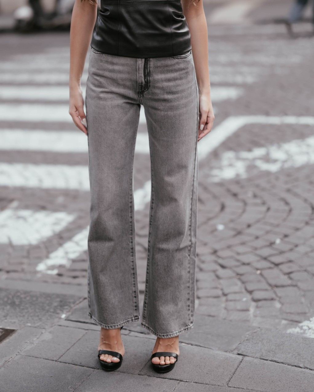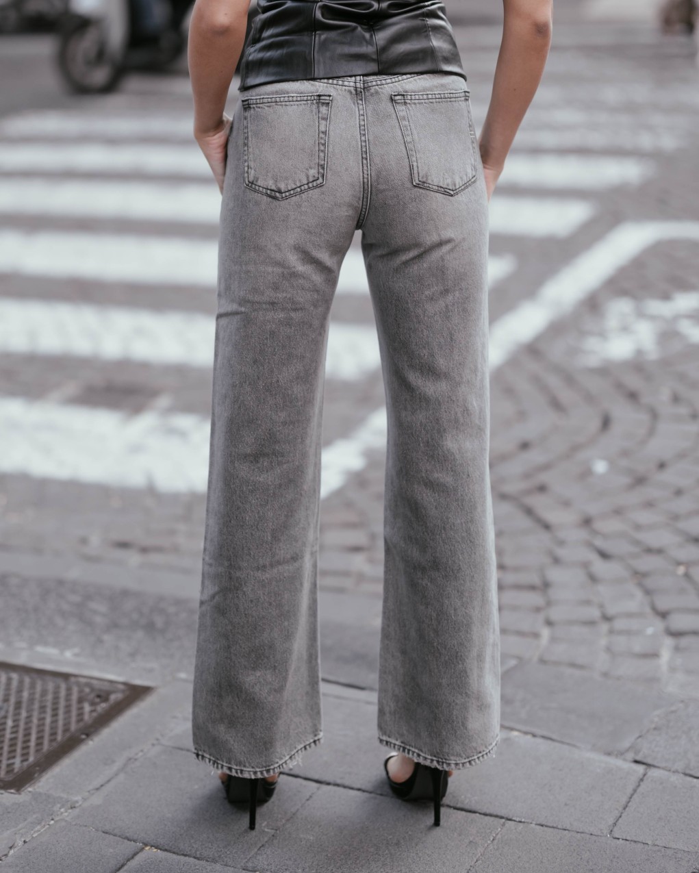 Jeans straight leg effetto glitter dalla vestibilità moderna e rilassata, realizzati in denim di alta qualità con lavaggio vintage. Il taglio dritto dalla vita alta si allarga leggermente verso il fondo, creando una silhouette elegante e contemporanea. La lunghezza alla caviglia e le cuciture a vista aggiungono un tocco di raffinatezza casual a questo capo versatile, perfetto per ogni occasione.