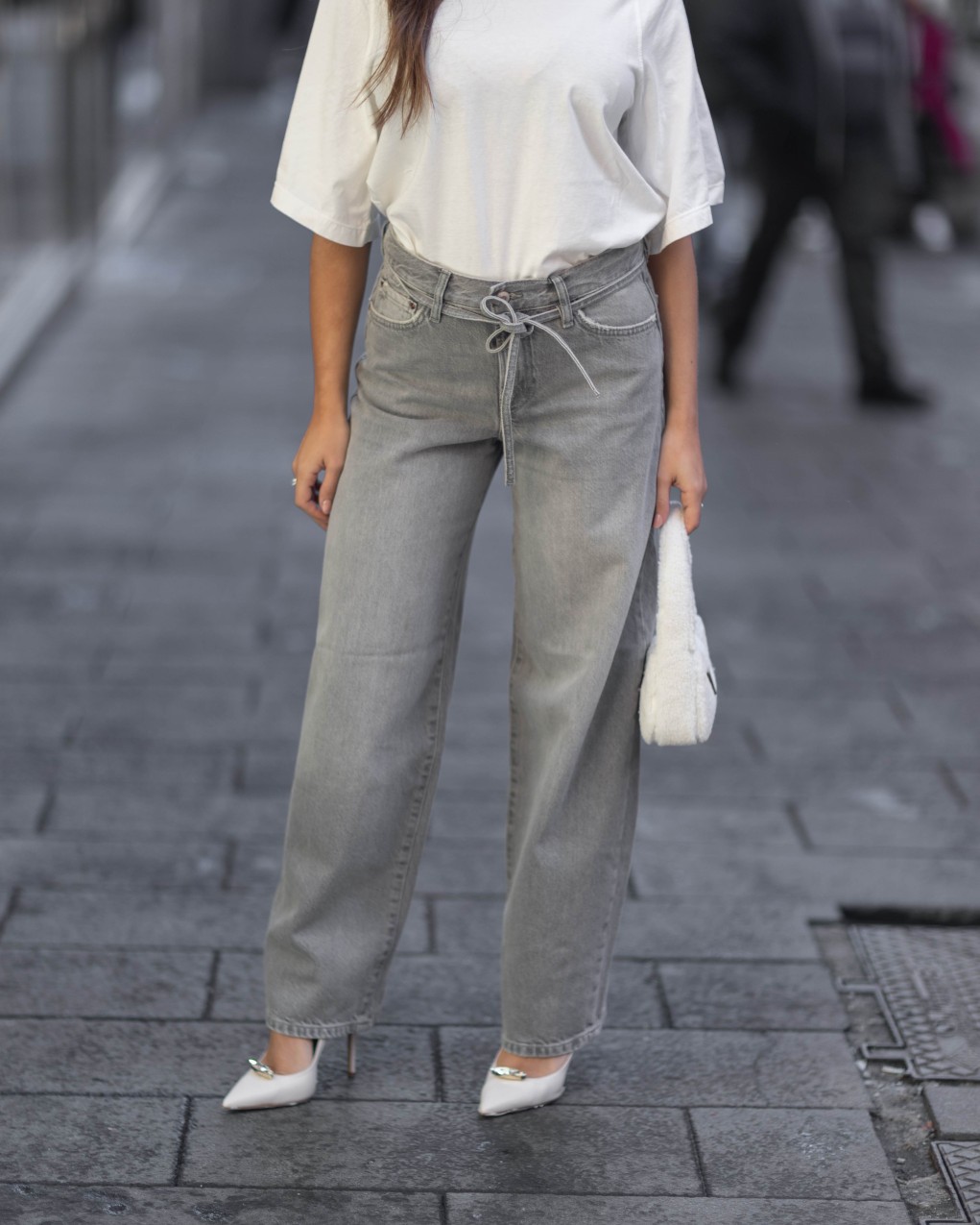 Jeans a vita alta in denim con vestibilità dritta e comoda, perfetti per un look casual contemporaneo. Caratterizzati da un originale dettaglio con laccio decorativo in vita che aggiunge un tocco distintivo al design classico. Realizzati in denim di qualità con effetto leggermente vissuto, questi pantaloni offrono una vestibilità regolare che valorizza la silhouette. Ideali per outfit quotidiani versatili, si abbinano facilmente a t-shirt, camicie e top sia casual che eleganti.