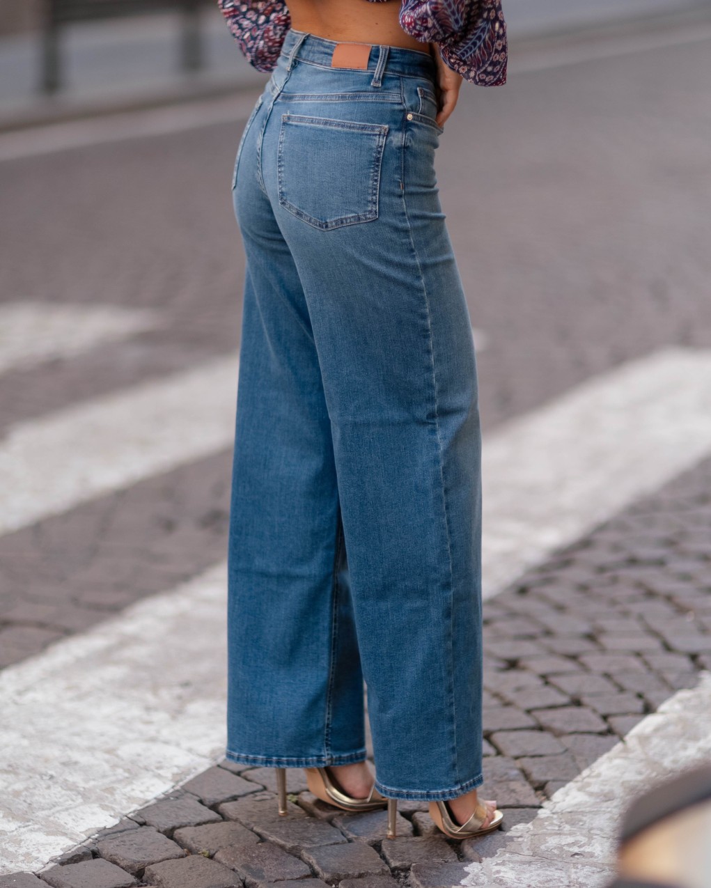 jeans a vita alta sono caratterizzati da una gamba ampia e dritta, che conferisce un look rilassato e contemporaneo