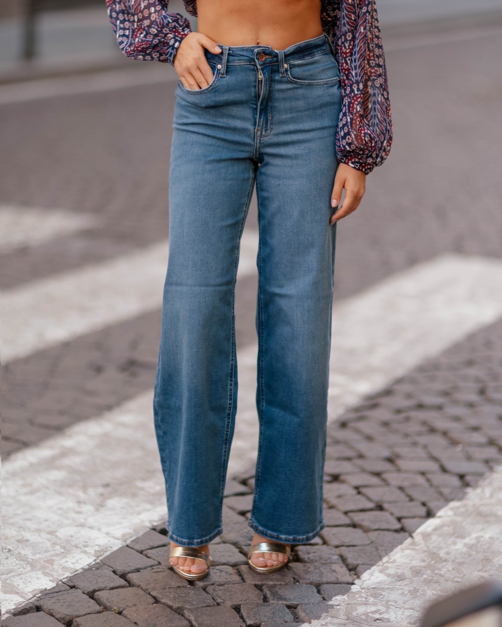 jeans a vita alta sono caratterizzati da una gamba ampia e dritta, che conferisce un look rilassato e contemporaneo