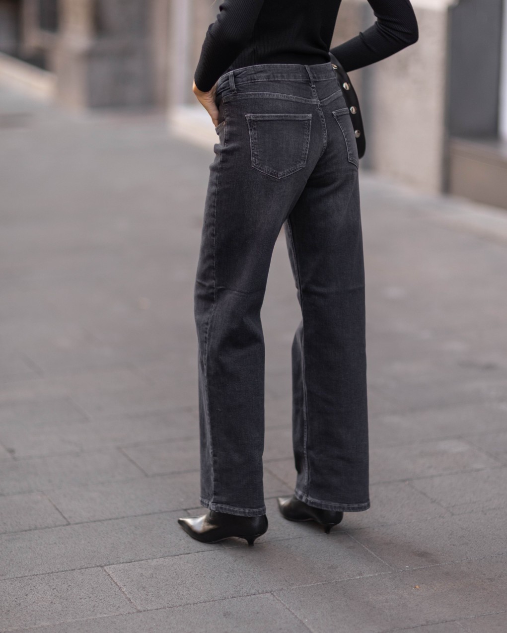 Jeans gamba dritta in denim di qualità, perfetti per un look casual-chic contemporaneo. Il taglio straight leg garantisce una vestibilità comoda e versatile, valorizzando la silhouette con una linea pulita e moderna. Realizzati in cotone denim resistente, presentano classiche tasche a cinque tasche e chiusura con bottone. Ideali da abbinare sia a scarpe basse che a tacchi per outfit dal giorno alla sera.