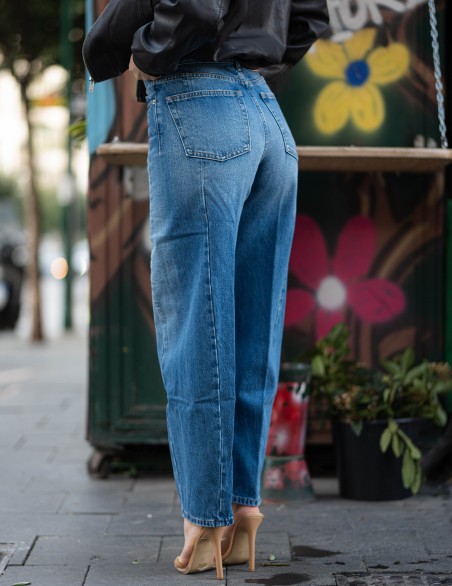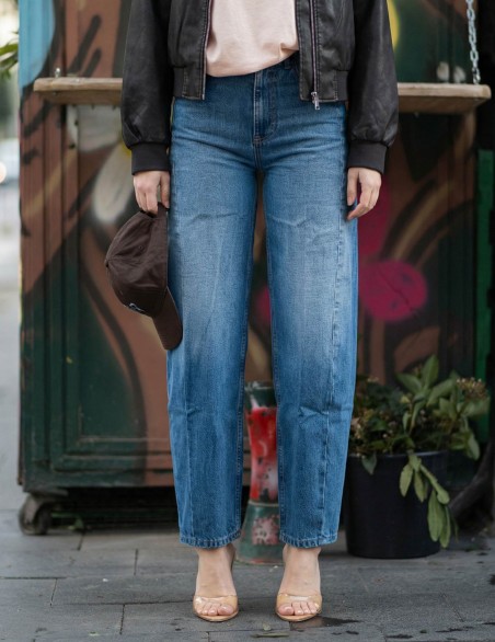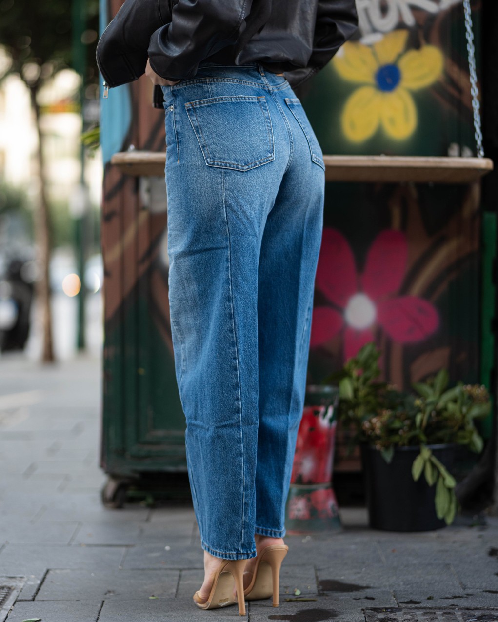 Jeans balloon fit realizzati in 100% cotone. Modello a cinque tasche con chiusura frontale tramite zip e bottone, caratterizzato da volumi morbidi per una vestibilità contemporanea e confortevole.