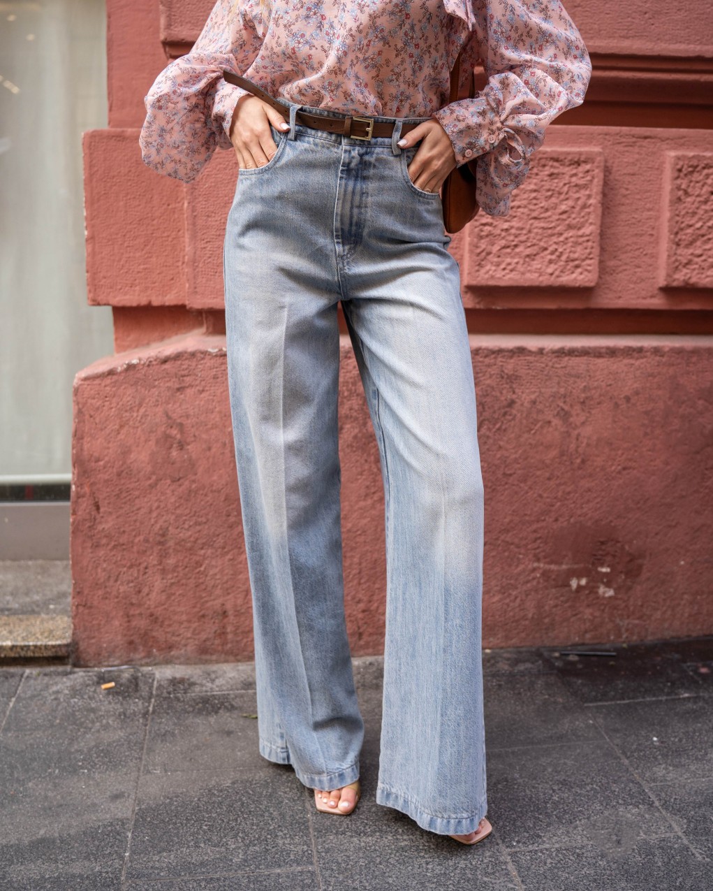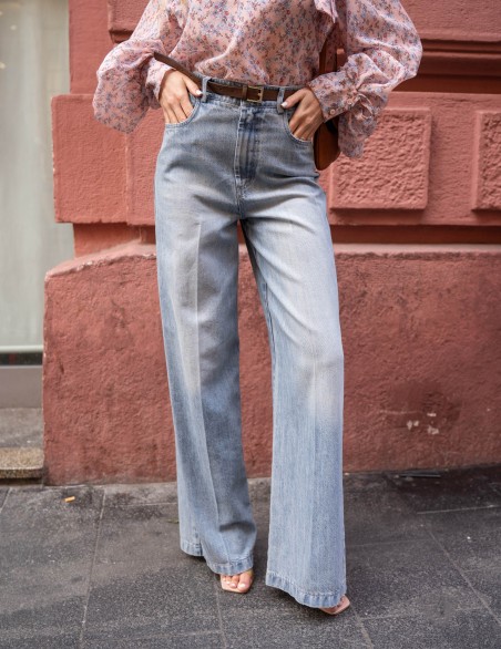Jeans dal taglio palazzo con cintura in vita per una vestibilità definita, cinque tasche classiche e chiusura frontale a lampo e bottone. Realizzati in tessuto resistente e confortevole, uniscono eleganza e praticità, perfetti per look casual o smart-casual con un tocco contemporaneo.