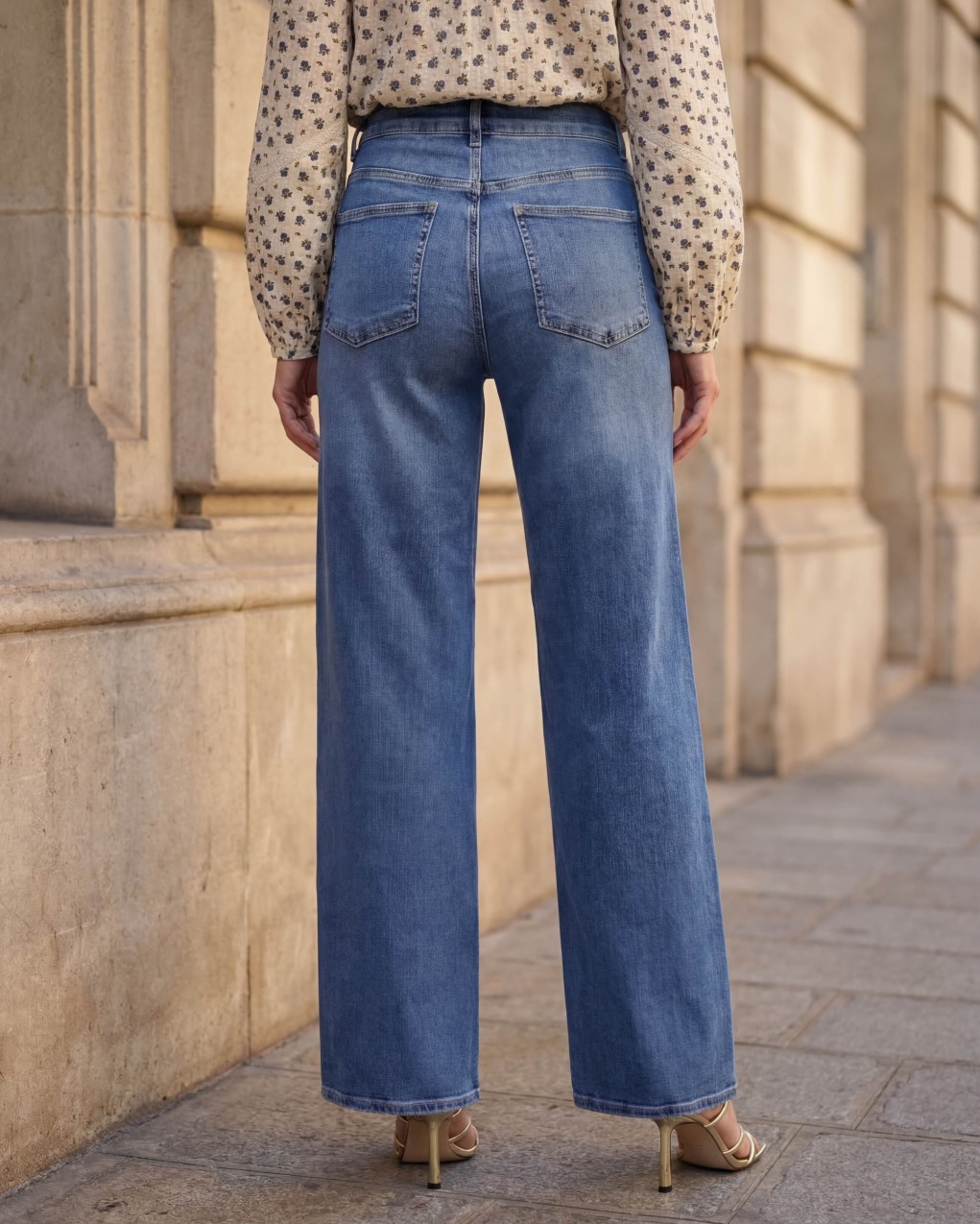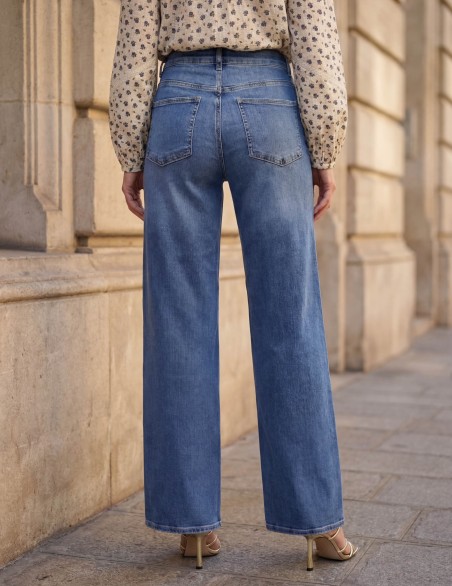 jeans a vita alta sono caratterizzati da una gamba ampia e dritta, che conferisce un look rilassato e contemporaneo