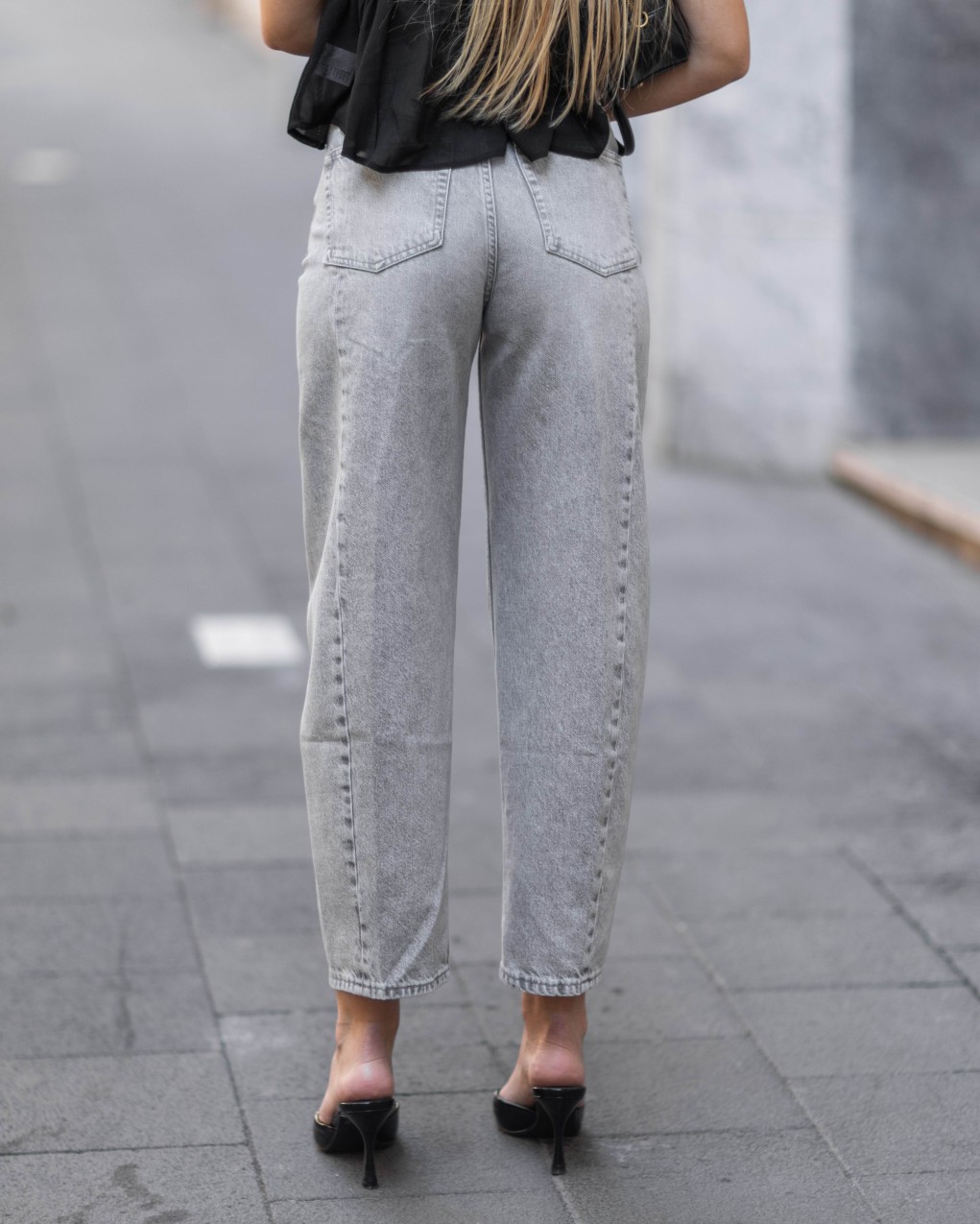 Jeans balloon fit realizzati in 100% cotone. Modello a cinque tasche con chiusura frontale tramite zip e bottone, caratterizzato da volumi morbidi per una vestibilità contemporanea e confortevole.