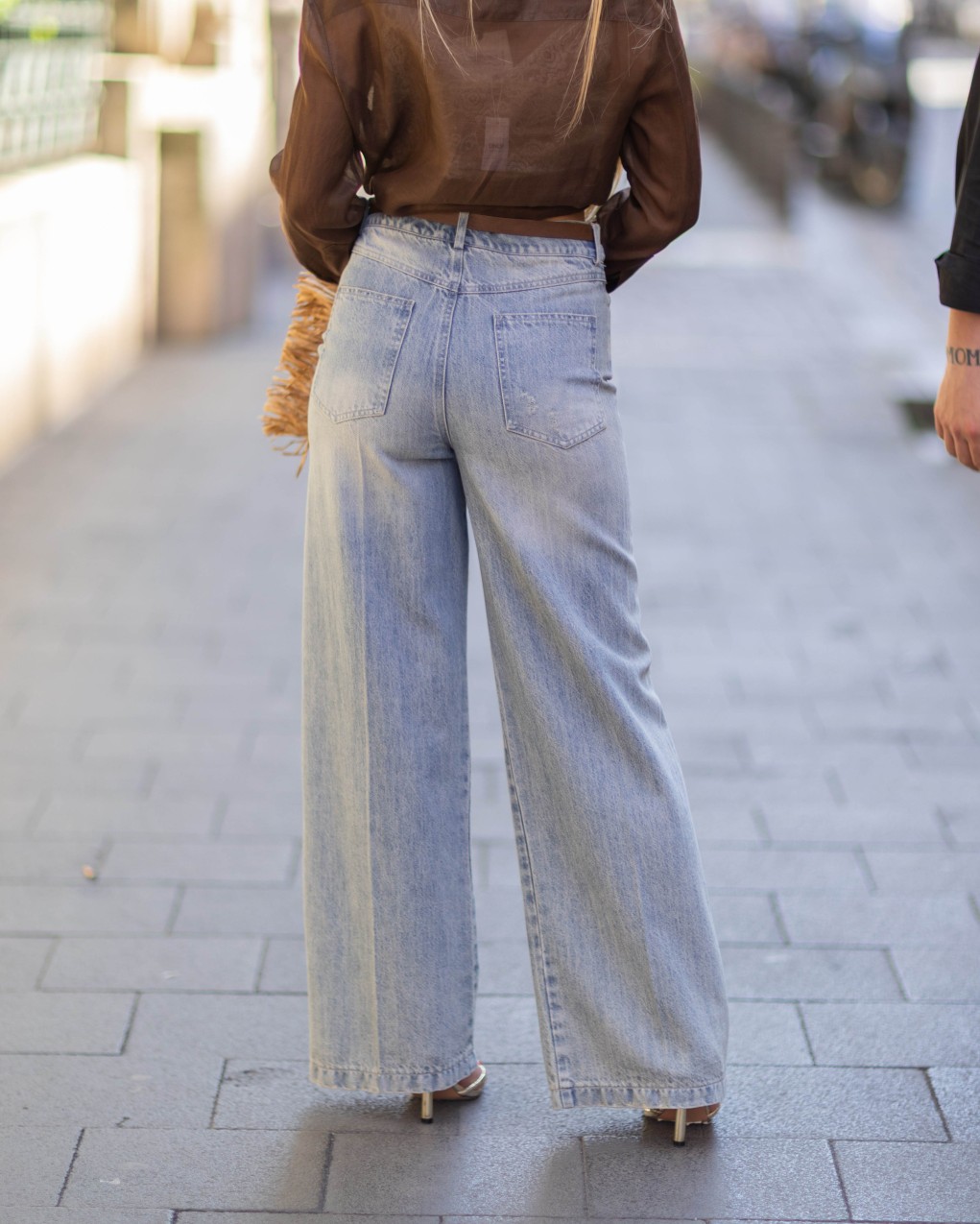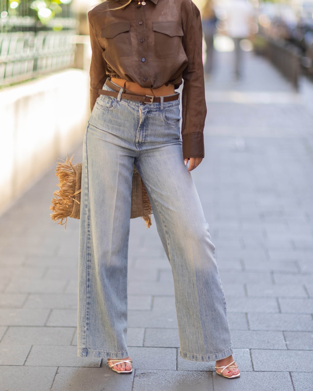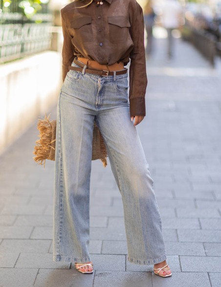 Jeans dal taglio palazzo con cintura in vita per una vestibilità definita, cinque tasche classiche e chiusura frontale a lampo e bottone. Realizzati in tessuto resistente e confortevole, uniscono eleganza e praticità, perfetti per look casual o smart-casual con un tocco contemporaneo.