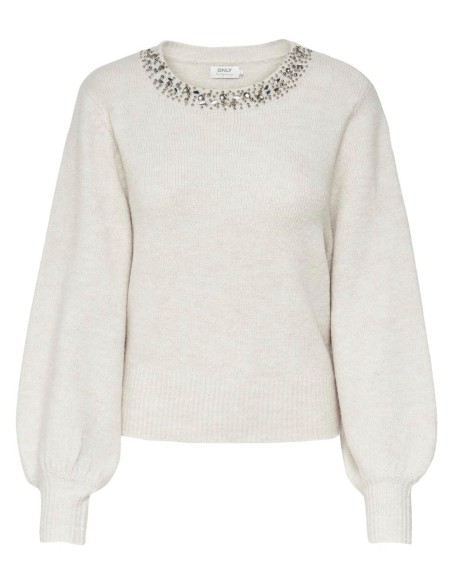 •La particolarità di questo capo è la finta collana di strass che adorna il collo: gli strass sono applicati direttamente sulla maglia, creando l'illusione di un gioiello incorporato