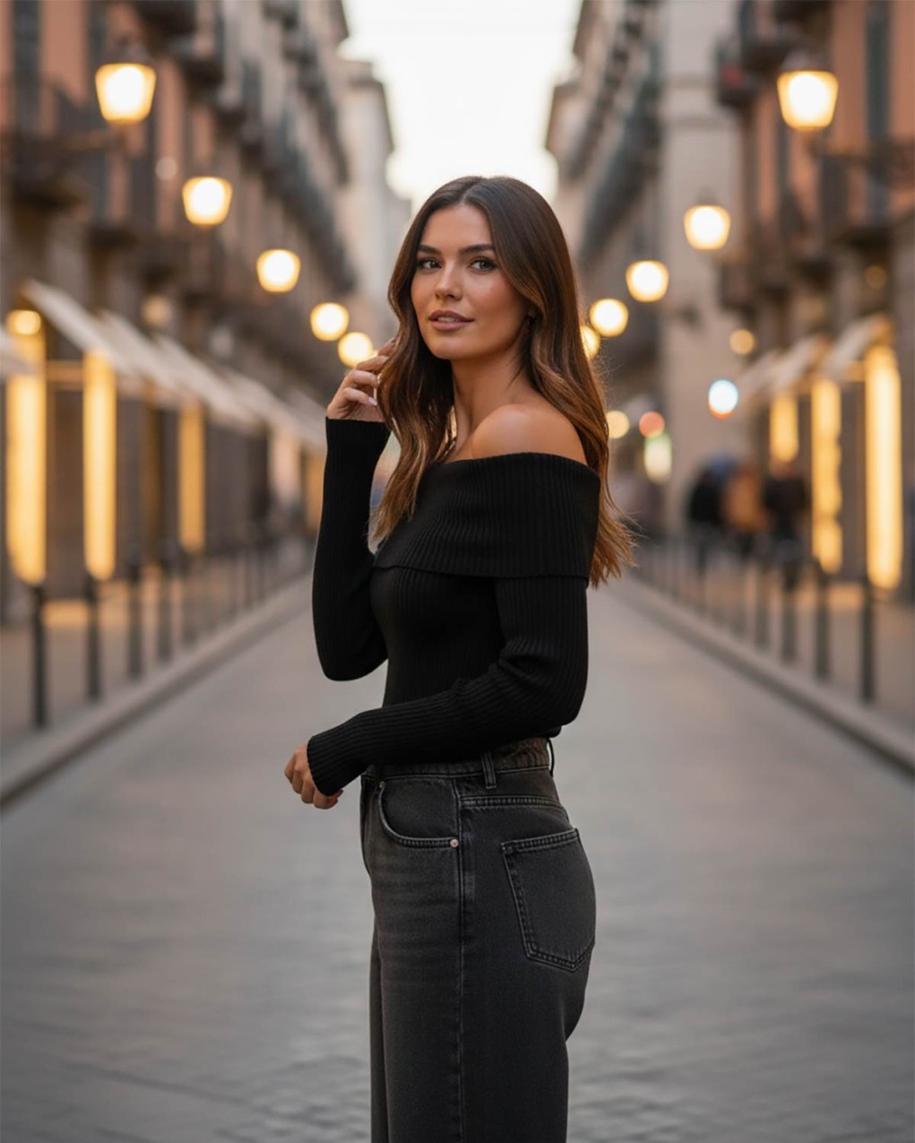 La scollatura a barca sottolinea delicatamente le spalle, rendendo questo capo ideale per occasioni casual o serate fuori, mantenendo sempre un'eleganza naturale.