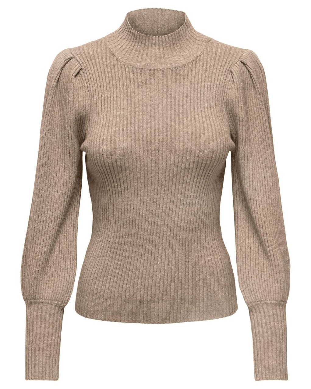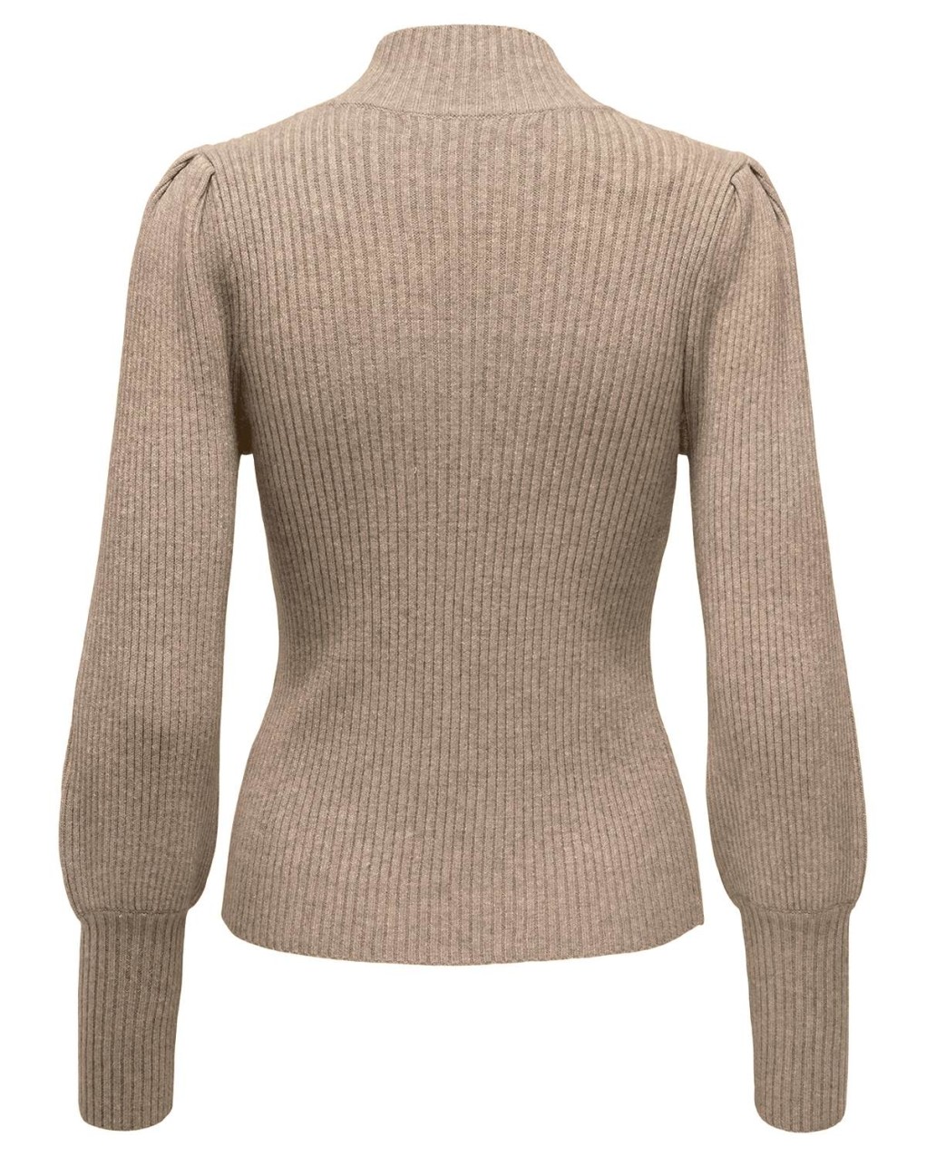 Maglia a costine con collo a lupetto, caratterizzato da maniche a palloncino dal volume ricercato e polsini aderenti. Realizzato in morbida lana, presenta una vestibilità aderente che esalta la silhouette. La lavorazione a coste verticali e il design sofisticato lo rendono perfetto per outfit sia casual che formali.