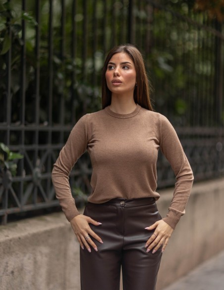 Maglia a girocollo realizzato in morbido tessuto con una vestibilità regular che segue armoniosamente le linee del corpo. Il design minimalista e la manifattura di alta qualità lo rendono un capo versatile perfetto per ogni occasione. Le rifiniture a costine sul collo, polsini e orlo garantiscono una silhouette pulita e duratura nel tempo.