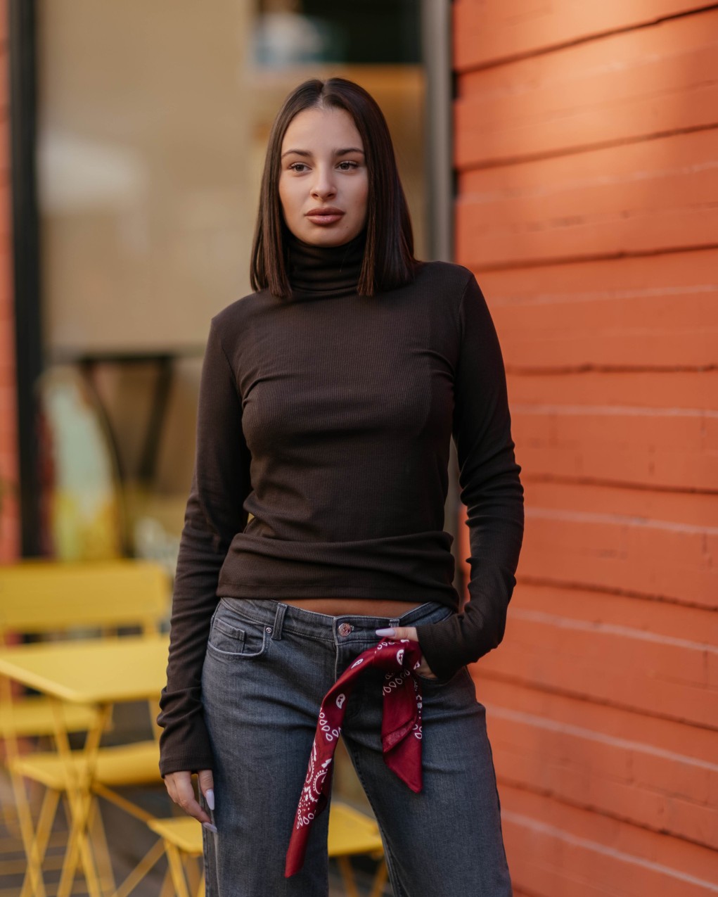 Maglia a collo alto da donna, ideale per un look casual-elegante durante la stagione fredda. Realizzata in tessuto stretch morbido e confortevole, offre una vestibilità aderente che valorizza la silhouette. Le maniche lunghe e il collo alto garantiscono calore e protezione, mentre la texture a coste aggiunge un tocco di stile contemporaneo. Perfetta da abbinare a jeans o pantaloni per outfit quotidiani versatili.