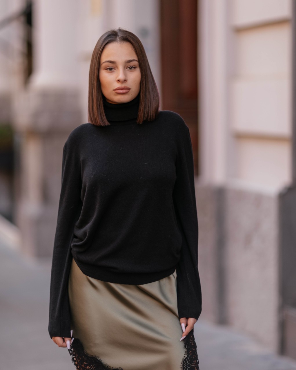 Maglione a collo alto dal design essenziale e sofisticato, ideale per un look elegante e contemporaneo. Realizzato in morbido tessuto a maglia fine che garantisce comfort e calore durante la stagione fredda. La vestibilità è regolare e confortevole, con maniche lunghe e collo alto avvolgente. Un capo versatile perfetto da abbinare sia a pantaloni che a gonne per outfit casual-chic o formali.