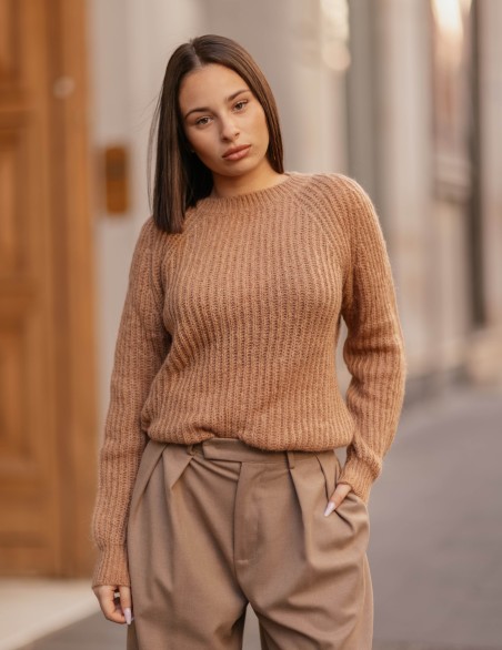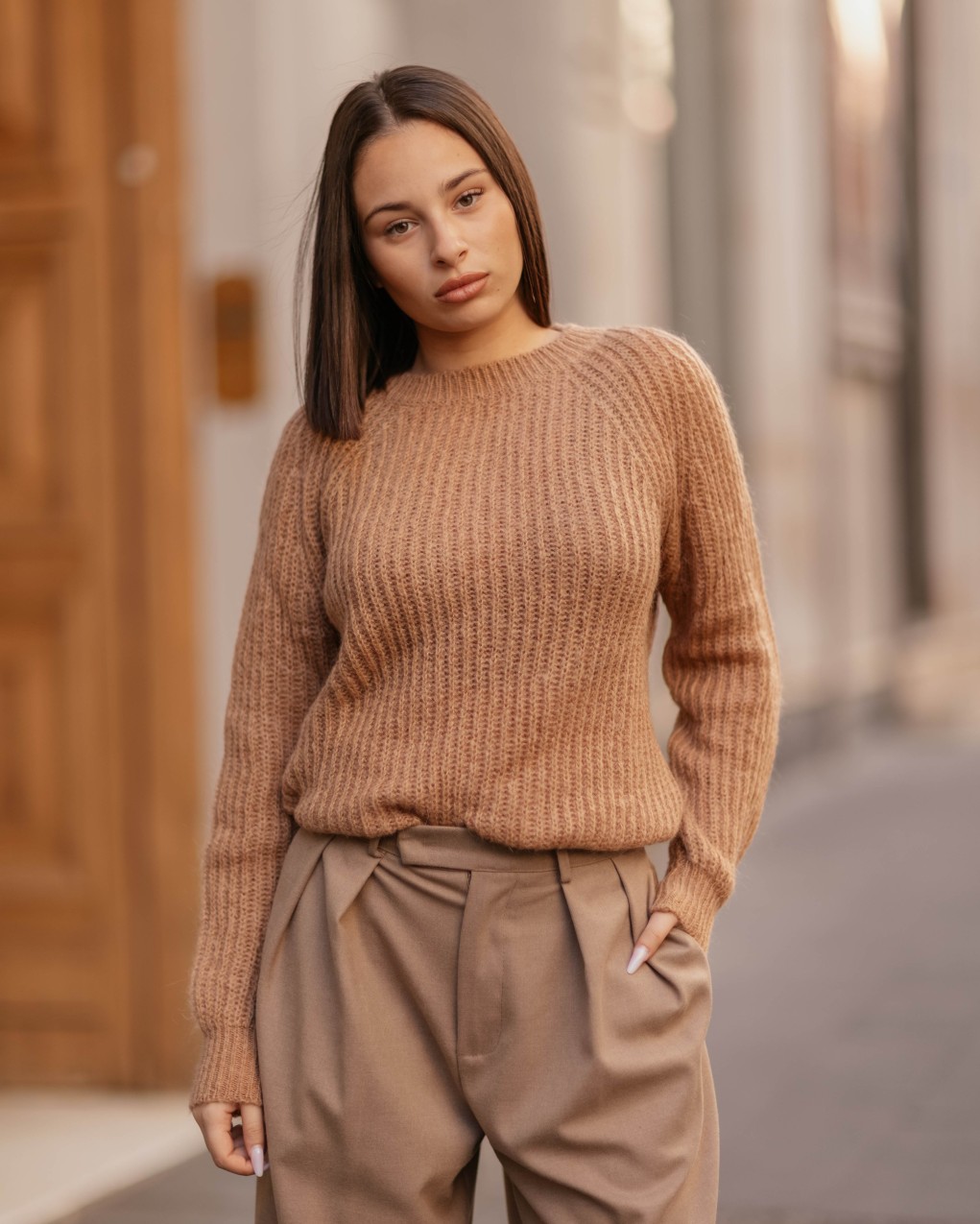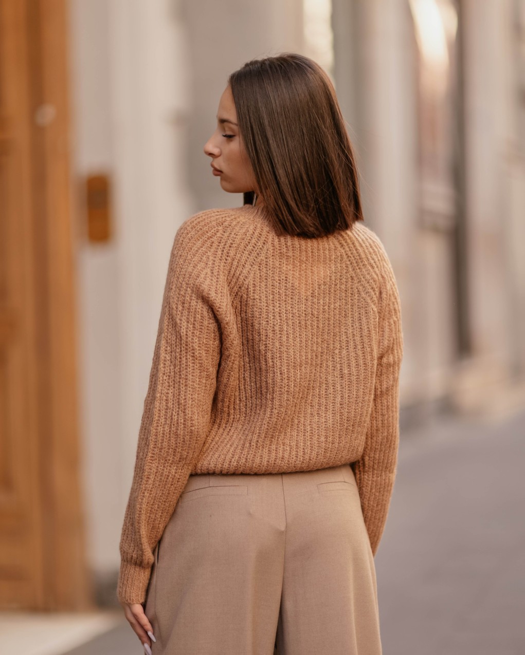 Maglione in maglia a coste dallo stile classico e versatile, perfetto per la stagione fredda. Realizzato in filato morbido di alta qualità, presenta collo alto e lavorazione a costine verticali che dona struttura e texture al capo. La vestibilità è regolare e confortevole, con maniche lunghe e orlo elasticizzato che garantiscono una silhouette definita
