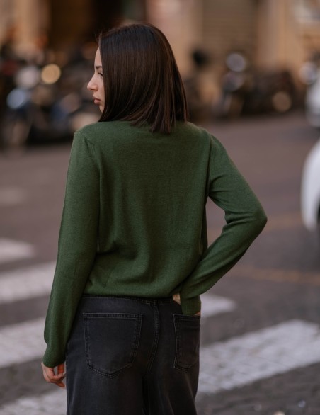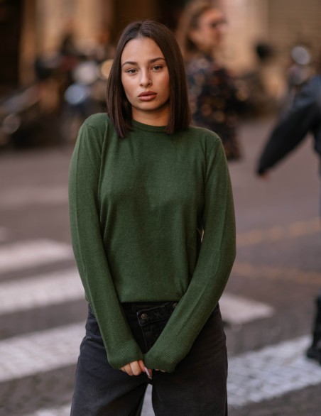 Maglione girocollo da donna in maglia fine, perfetto per un look casual-elegante quotidiano. Realizzato in morbido tessuto lavorato a maglia, presenta maniche lunghe con polsini elasticizzati e finitura a costine sul collo e orlo inferiore. La vestibilità è relaxed e confortevole, con lunghezza classica che si adatta perfettamente a vita media