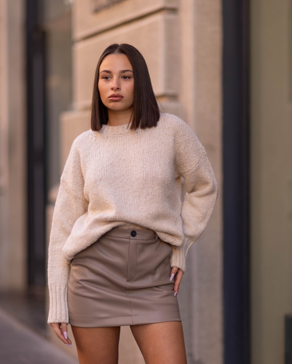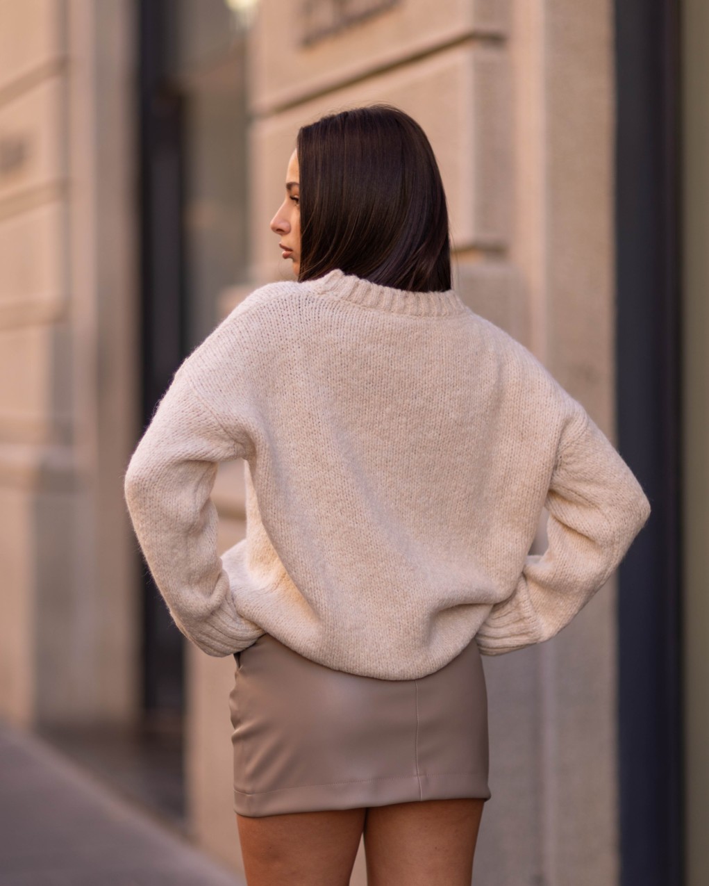 Maglione realizzato in filato morbido e caldo, presenta girocollo classico e maniche lunghe con polsini a costine per un comfort ottimale. La vestibilità è regular e comoda, con lunghezza standard che lo rende versatile da abbinare a pantaloni e gonne. Un capo essenziale dal mood minimal che garantisce stile e praticità per ogni occasione quotidiana.