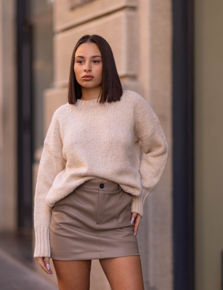 Maglione realizzato in filato morbido e caldo, presenta girocollo classico e maniche lunghe con polsini a costine per un comfort ottimale. La vestibilità è regular e comoda, con lunghezza standard che lo rende versatile da abbinare a pantaloni e gonne. Un capo essenziale dal mood minimal che garantisce stile e praticità per ogni occasione quotidiana.