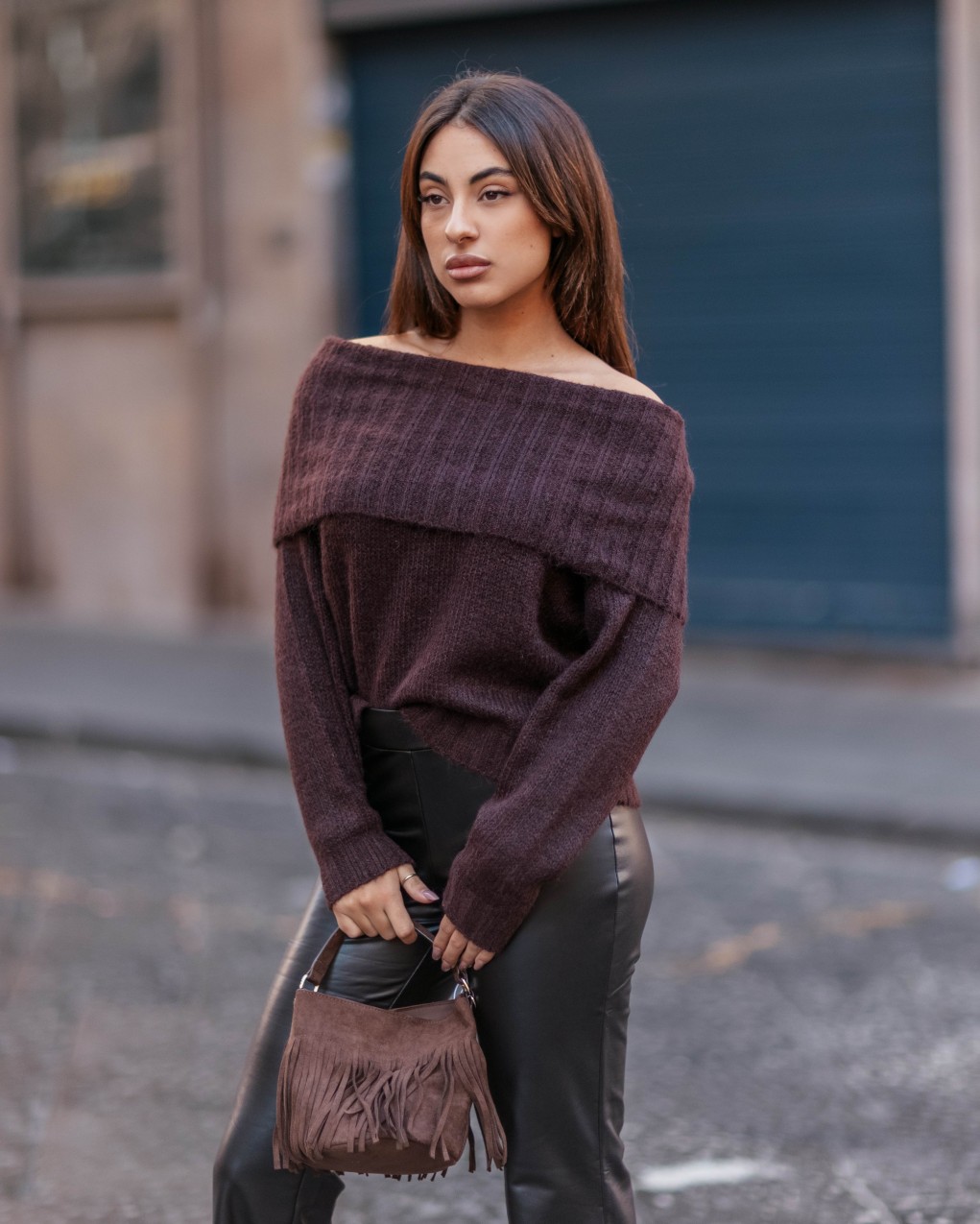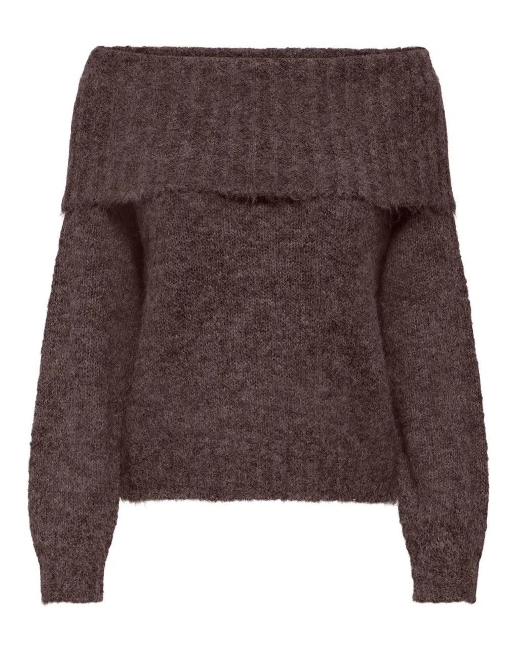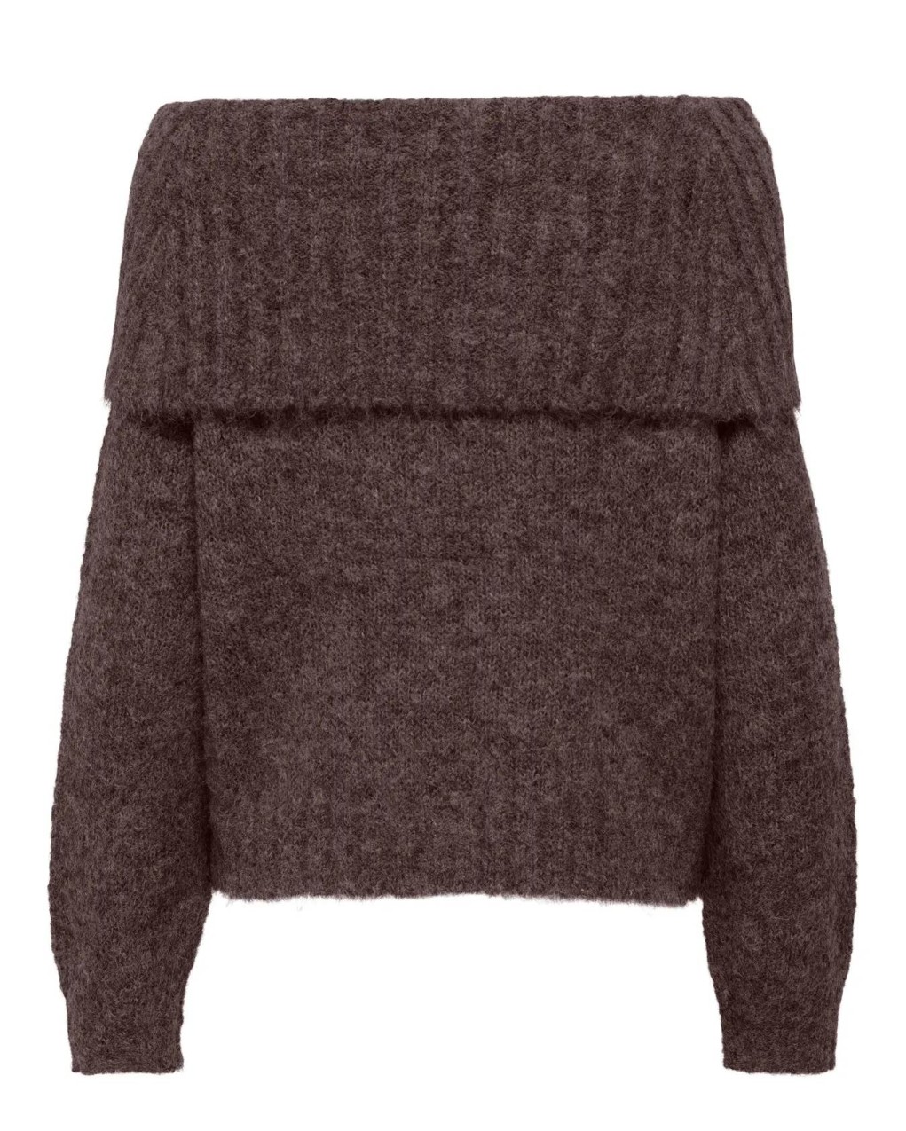 Maglione donna con elegante scollo a barca off-shoulder, perfetto per un look contemporaneo e sofisticato. Realizzato in morbida maglia con effetto peloso che garantisce comfort e calore. Le maniche lunghe e la vestibilità regular assicurano una silhouette femminile e confortevole. Ideale da abbinare sia a jeans che a pantaloni eleganti per outfit versatili dal giorno alla sera.