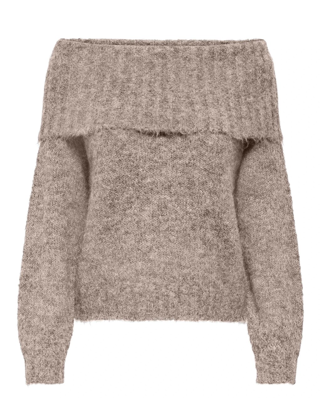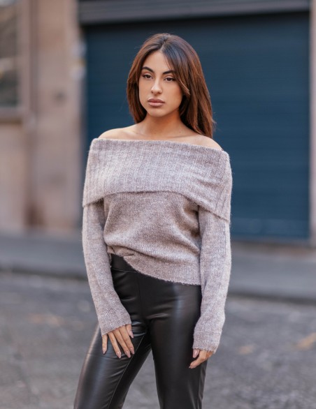 Maglione donna con elegante scollo a barca off-shoulder, perfetto per un look contemporaneo e sofisticato. Realizzato in morbida maglia con effetto peloso che garantisce comfort e calore. Le maniche lunghe e la vestibilità regular assicurano una silhouette femminile e confortevole. Ideale da abbinare sia a jeans che a pantaloni eleganti per outfit versatili dal giorno alla sera.