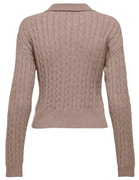 Maglia polo da donna in stile preppy con elegante lavorazione a trecce su tutta la superficie. Realizzata in morbido tessuto a maglia, presenta colletto classico, chiusura con tre bottoni e un discreto dettaglio ricamato sul petto. vestibilità regular, perfetta per outfit casual-chic da indossare sia da sola che in abbinamento a capi layering.