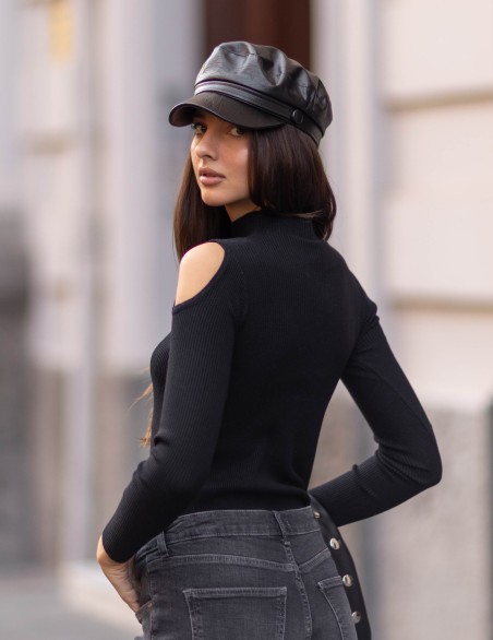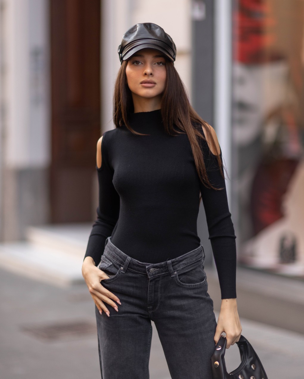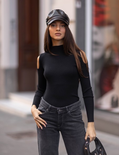 Maglia a collo alto con design contemporaneo e dettagli cut-out sulle spalle che aggiungono un tocco di stile moderno. Realizzata in morbido tessuto a coste che garantisce elasticità e comfort, questa maglia presenta maniche lunghe e una silhouette aderente che valorizza la figura. La vestibilità slim fit e il collo alto la rendono perfetta per outfit casual-chic e look urbani di tendenza. Capo versatile ideale per essere indossato sia da solo che come base per stratificazioni stilose.