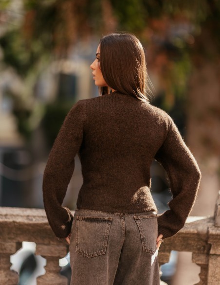 Maglione donna con scollo a V dal design avvolgente e sofisticato, perfetto per un look casual-chic. Realizzato in morbido tessuto effetto bouclé che garantisce comfort e calore, presenta maniche lunghe e una vestibilità regolare che valorizza la silhouette. Il particolare design incrociato sul davanti aggiunge un tocco di eleganza contemporanea, rendendolo ideale sia per occasioni informali che per outfit più ricercati.