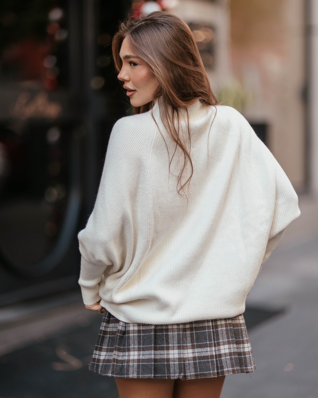 Elegante maglione a collo alto in maglia a costine, perfetto per un look sofisticato e contemporaneo. Realizzato in morbido tessuto lavorato a maglia, presenta maniche lunghe voluminose con effetto balloon e una silhouette comoda ma strutturata. La vestibilità è regolare con lunghezza classica che si abbina perfettamente a gonne e pantaloni. Un capo essenziale per la stagione fredda che unisce comfort termico e stile raffinato.