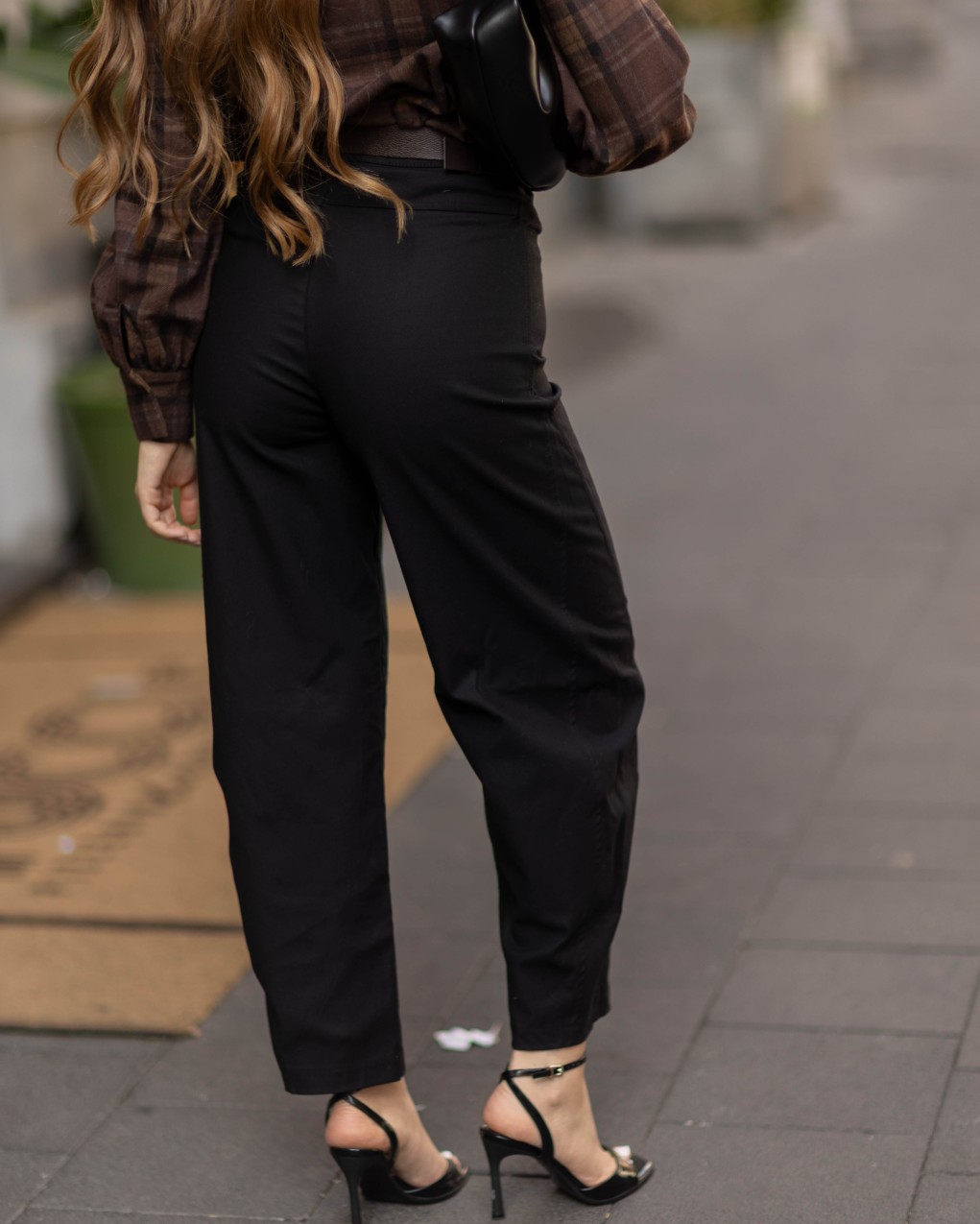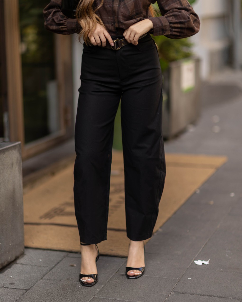Pantaloni eleganti dalla linea ampia e moderna, realizzati in morbido cotone di alta qualità. Il taglio straight-leg si distingue per la vita alta con passanti e l'elegante cintura ad anello inclusa. La vestibilità comfort e la lunghezza alla caviglia rendono questo capo perfetto per outfit sia casual che formali.