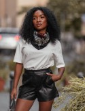 Shorts eleganti in ecopelle dalla vestibilità morbida con vita alta e taglio sartoriale. Il design minimal è impreziosito da tasche posteriori a filetto e pinces frontali che donano volume. La texture liscia e la costruzione strutturata garantiscono un capo versatile adatto sia a look casual che più sofisticati.