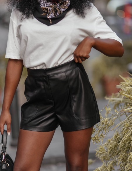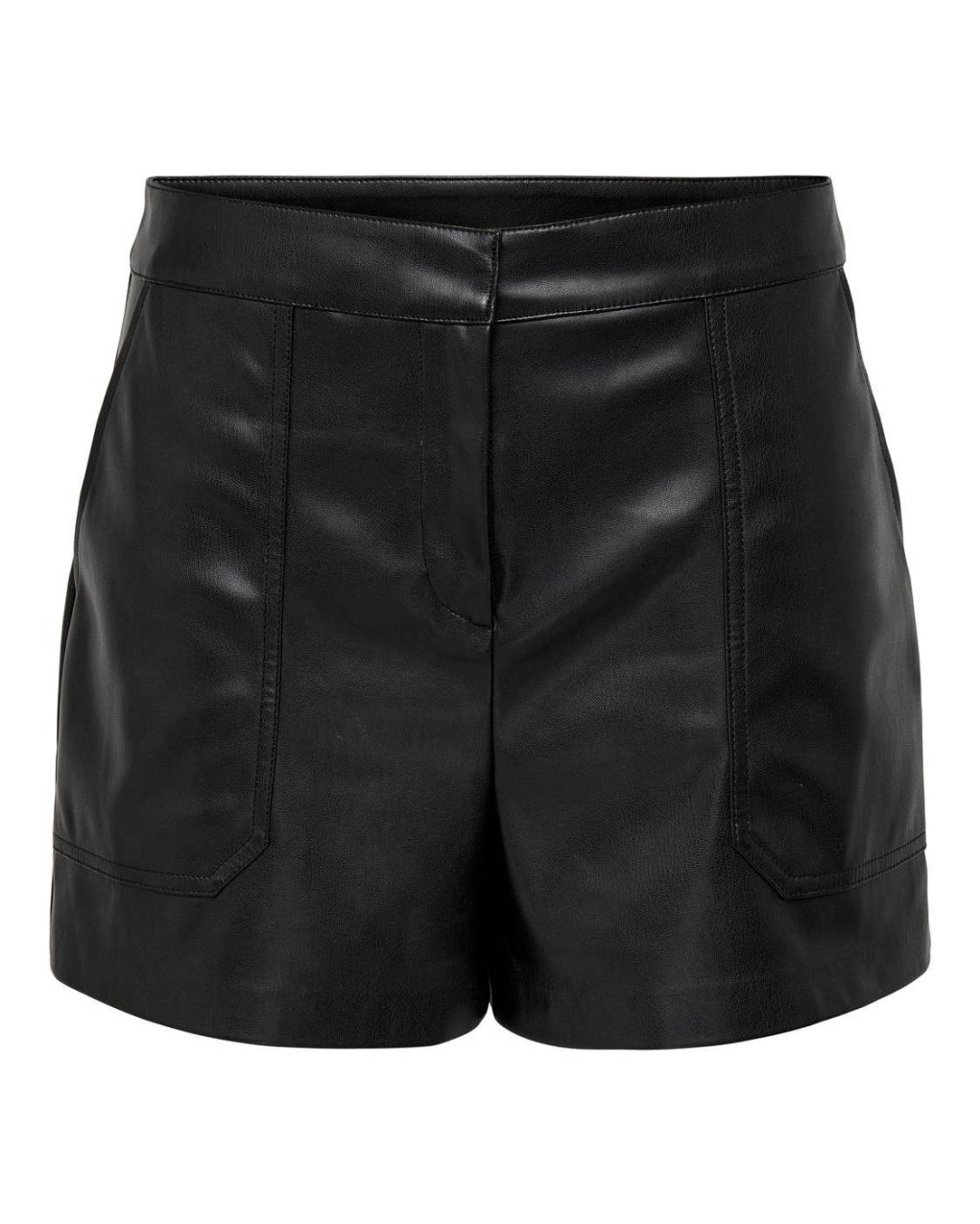 Shorts eleganti in ecopelle dalla vestibilità morbida con vita alta e taglio sartoriale. Il design minimal è impreziosito da tasche posteriori a filetto e pinces frontali che donano volume. La texture liscia e la costruzione strutturata garantiscono un capo versatile adatto sia a look casual che più sofisticati.
