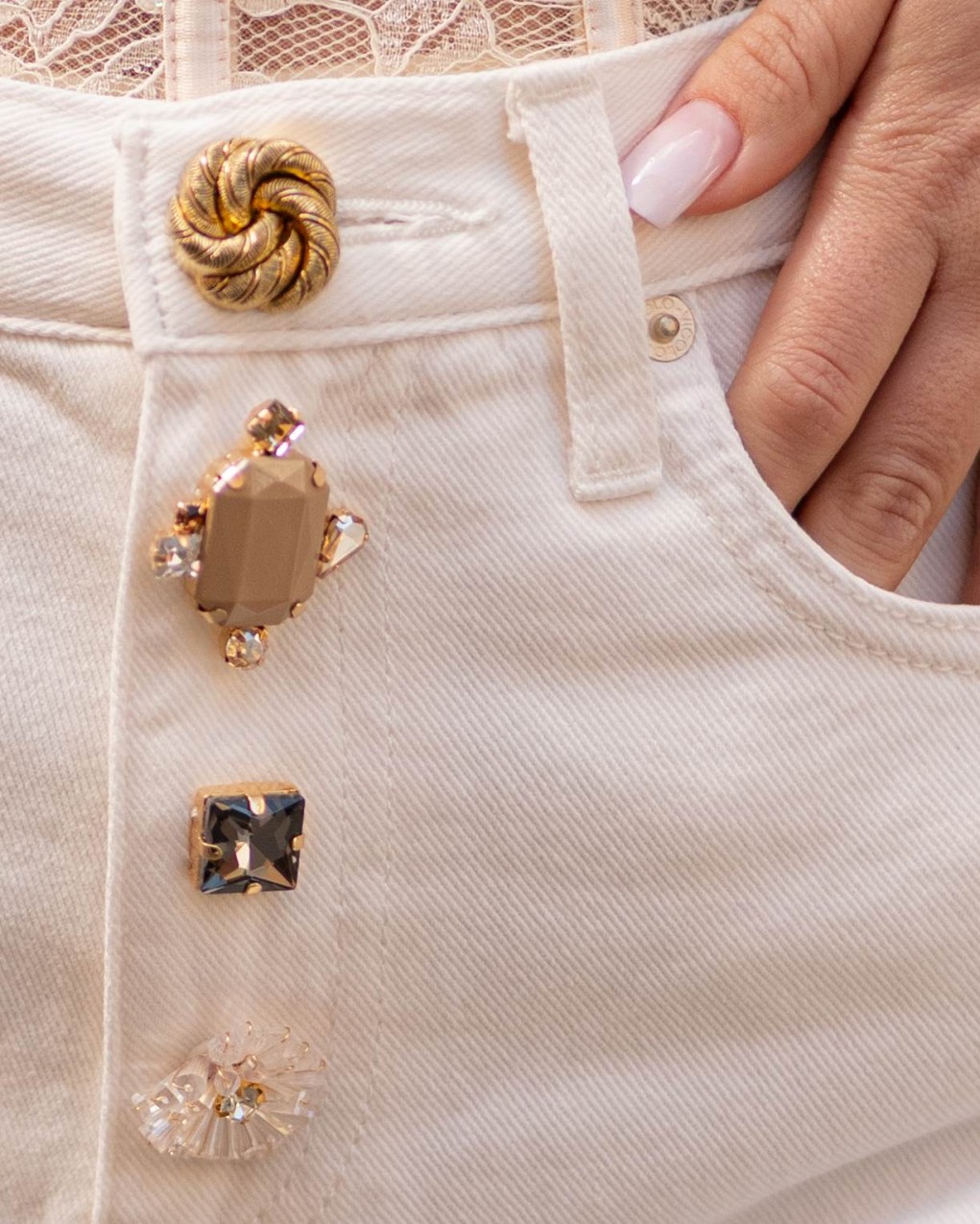 shorts mini con bottoni gioiello