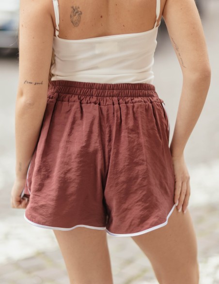 Shorts casual dallo stile sportivo e versatile, perfetti per il tempo libero e l'attività quotidiana. Realizzati in tessuto morbido e confortevole, presentano un pratico elastico in vita per una vestibilità comoda e regolabile. Il design è arricchito da eleganti bordini a contrasto lungo i bordi, che conferiscono un tocco distintivo e contemporaneo al capo.