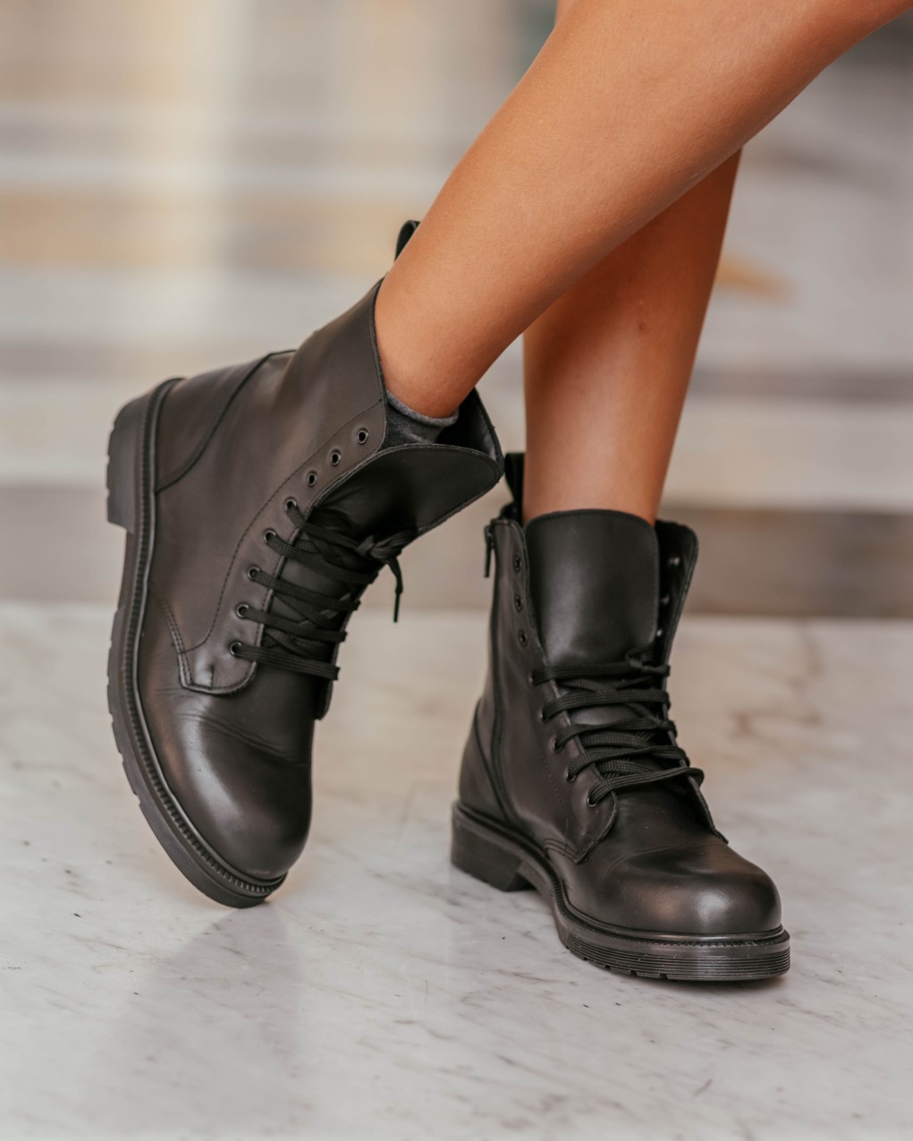 •Stivaletti dallo stile grintoso e contemporaneo sono realizzati in simil-pelle liscia e resistente, offrendo una calzatura robusta ma dal design raffinato