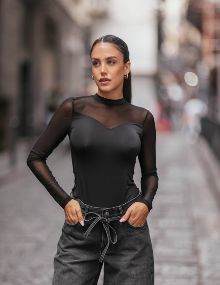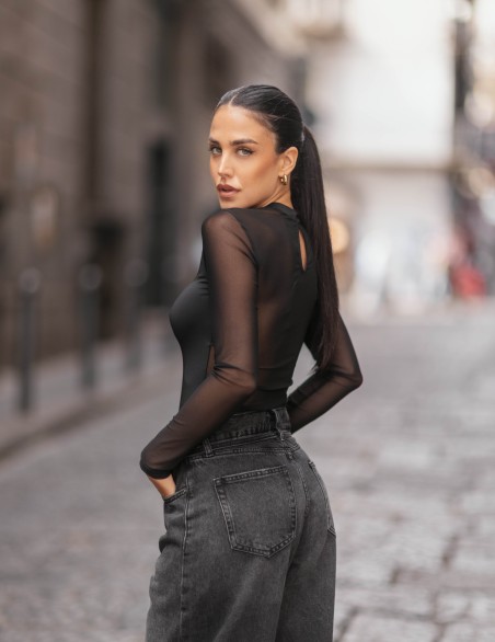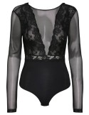 •Body a manica lunga con un design sofisticato e raffinato, caratterizzato da delle trasparenze che aggiungono un tocco di eleganza discreta, questo body è perfetto per chi cerca un equilibrio tra sensualità e classe