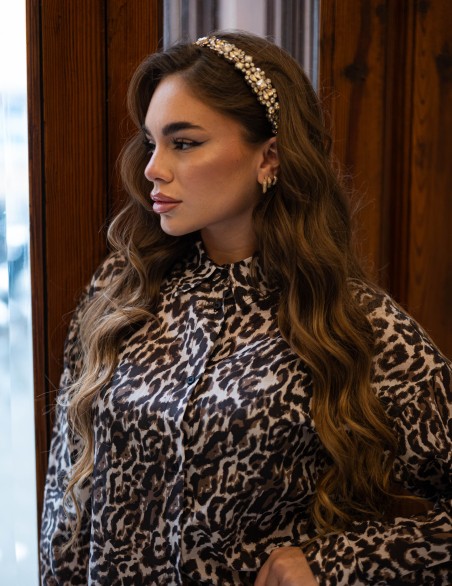 Elegante camicia oversize in morbido tessuto con audace stampa animalier. Il design presenta un collo alto, maniche lunghe e una vestibilità comoda e rilassata. Perfetta per creare look sofisticati sia casual che eleganti, questa camicia si caratterizza per il suo taglio contemporaneo e la versatilità nell'abbinamento.