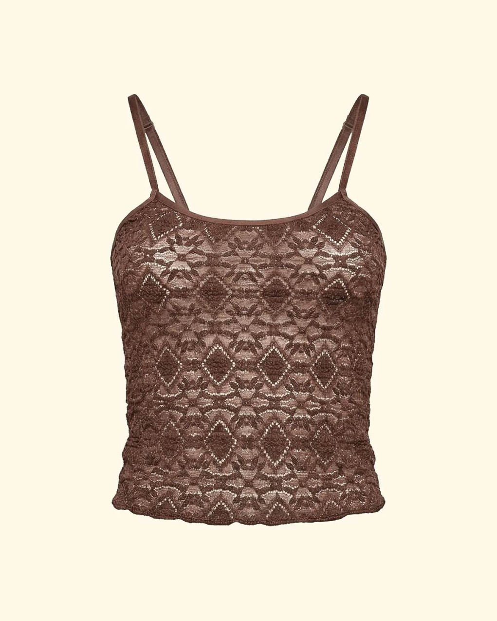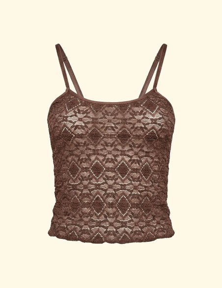 top in elegante pizzo floreale con spalline sottili. Realizzato interamente in delicato tessuto di pizzo