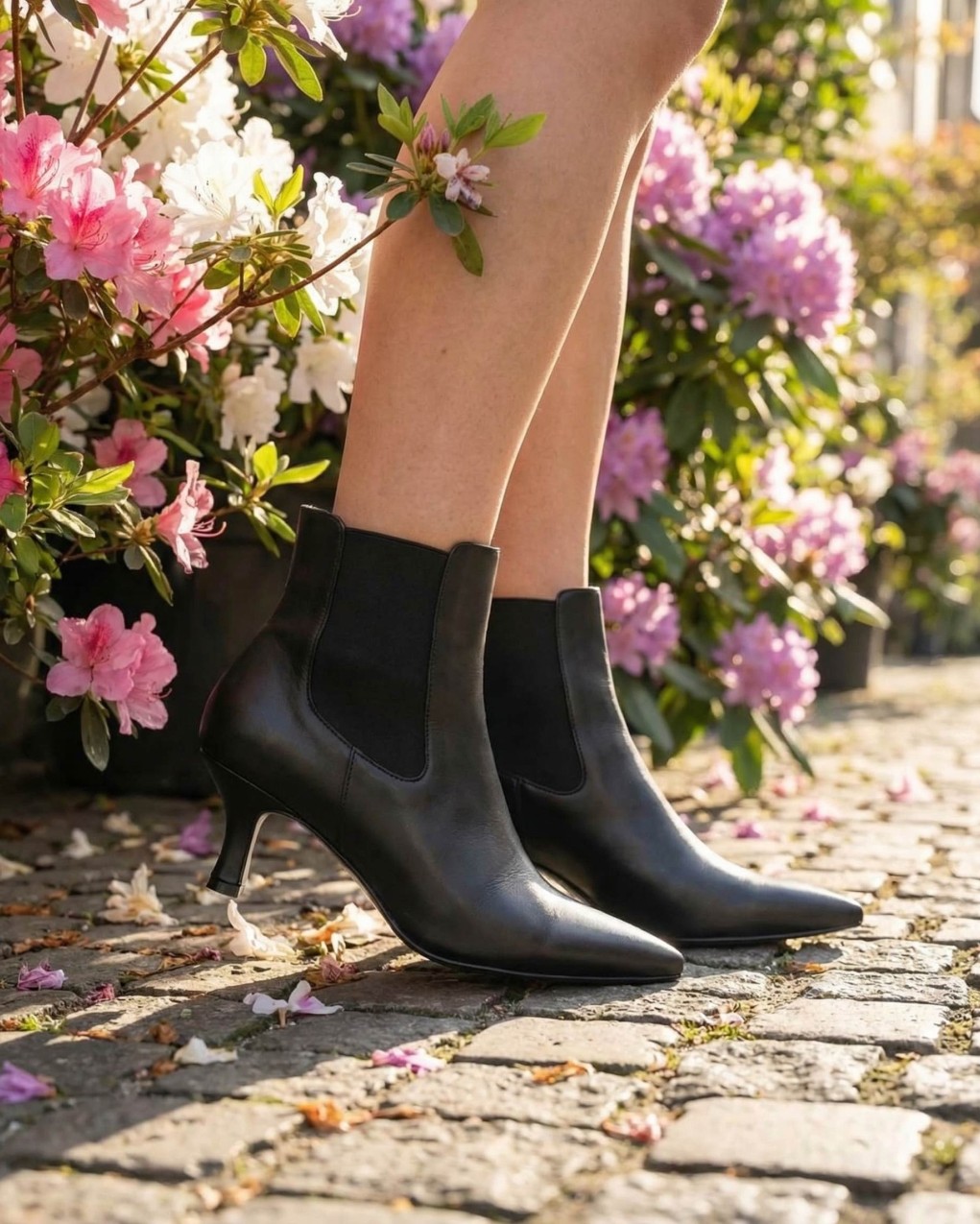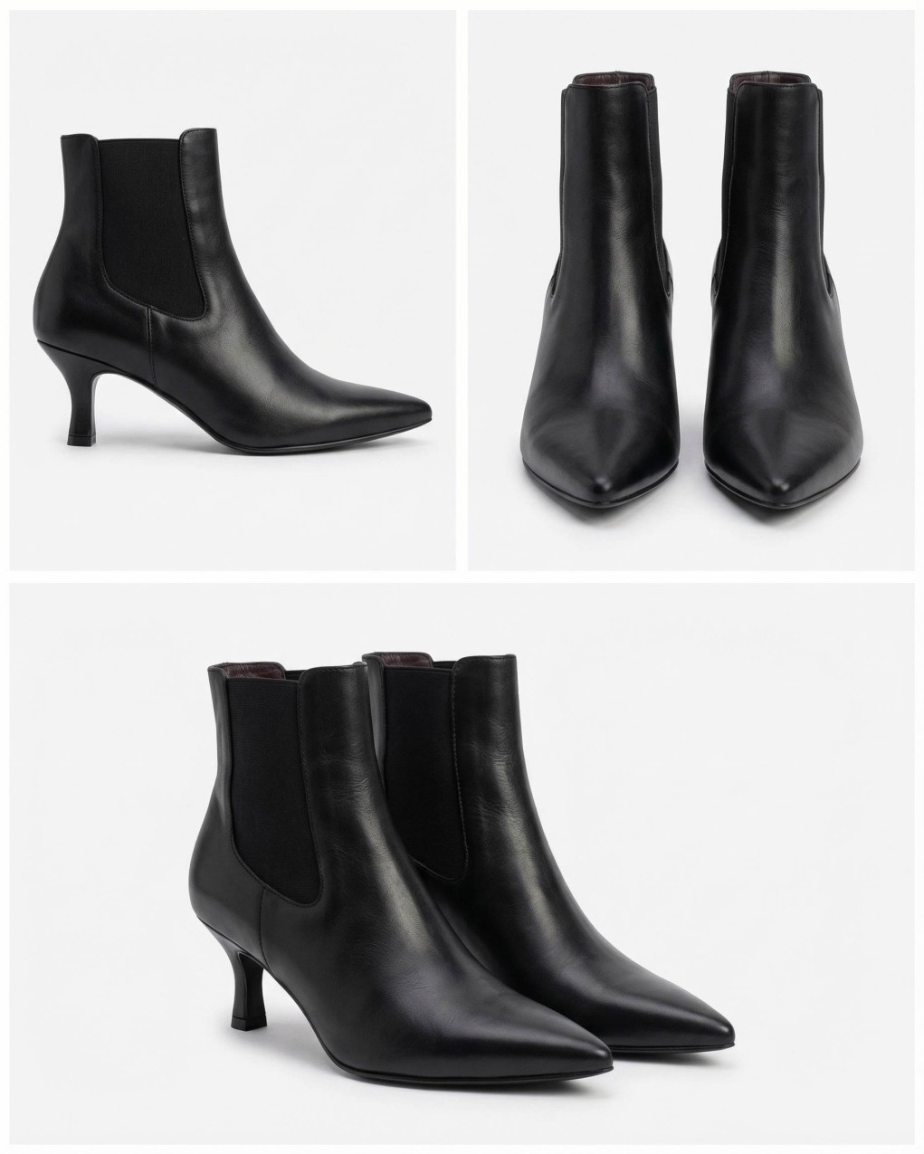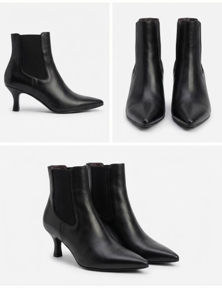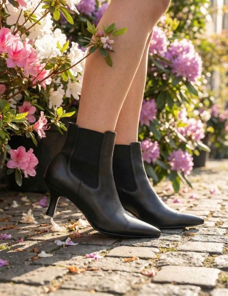 Stivaletti chelsea donna dal design contemporaneo ed elegante, perfetti per outfit casual ed eleganti. Realizzati in pelle di qualità con inserti elastici laterali che garantiscono praticità nella calzata e vestibilità confortevole. Dotati di tacco medio a forma scultorea che assicura stabilità e slancia la figura. La punta affusolata e la silhouette sleek li rendono versatili per ogni occasione, dalla quotidianità alle uscite serali.