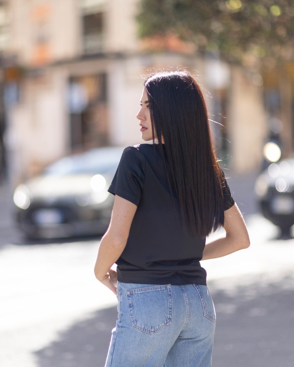Maglietta satin a maniche lunghe dal taglio essenziale e minimalista. La vestibilità regular fit e il girocollo classico la rendono un capo versatile e facilmente abbinabile.