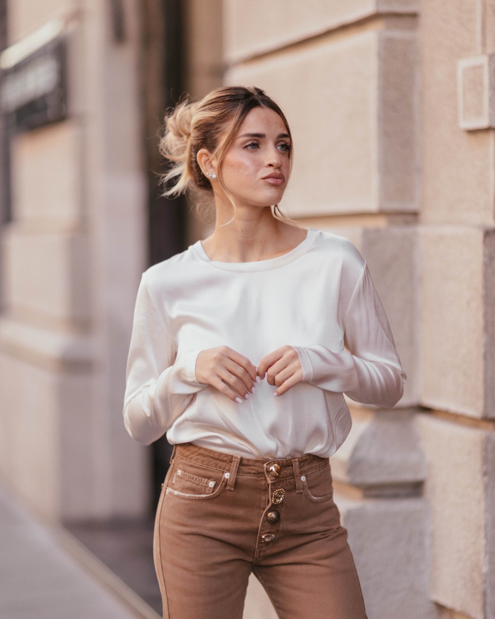 Maglietta satin a maniche lunghe dal taglio essenziale e minimalista. La vestibilità regular fit e il girocollo classico la rendono un capo versatile e facilmente abbinabile.