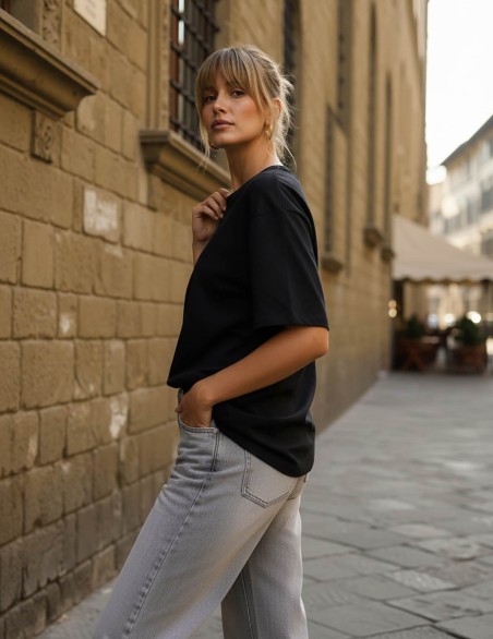 T-shirt girocollo over a maniche corte con dettaglio collo in costina.