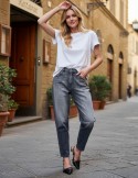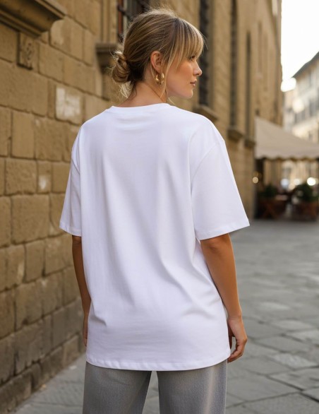 T-shirt girocollo over a maniche corte con dettaglio collo in costina.