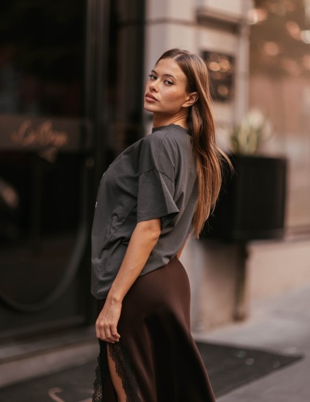 T-shirt basic dal taglio oversize realizzata in morbido cotone premium di alta qualità. Il design essenziale con girocollo e maniche corte offre una vestibilità comoda e versatile, perfetta per ogni occasione. La struttura classica e la cucitura impeccabile garantiscono durabilità e un aspetto sempre impeccabile.