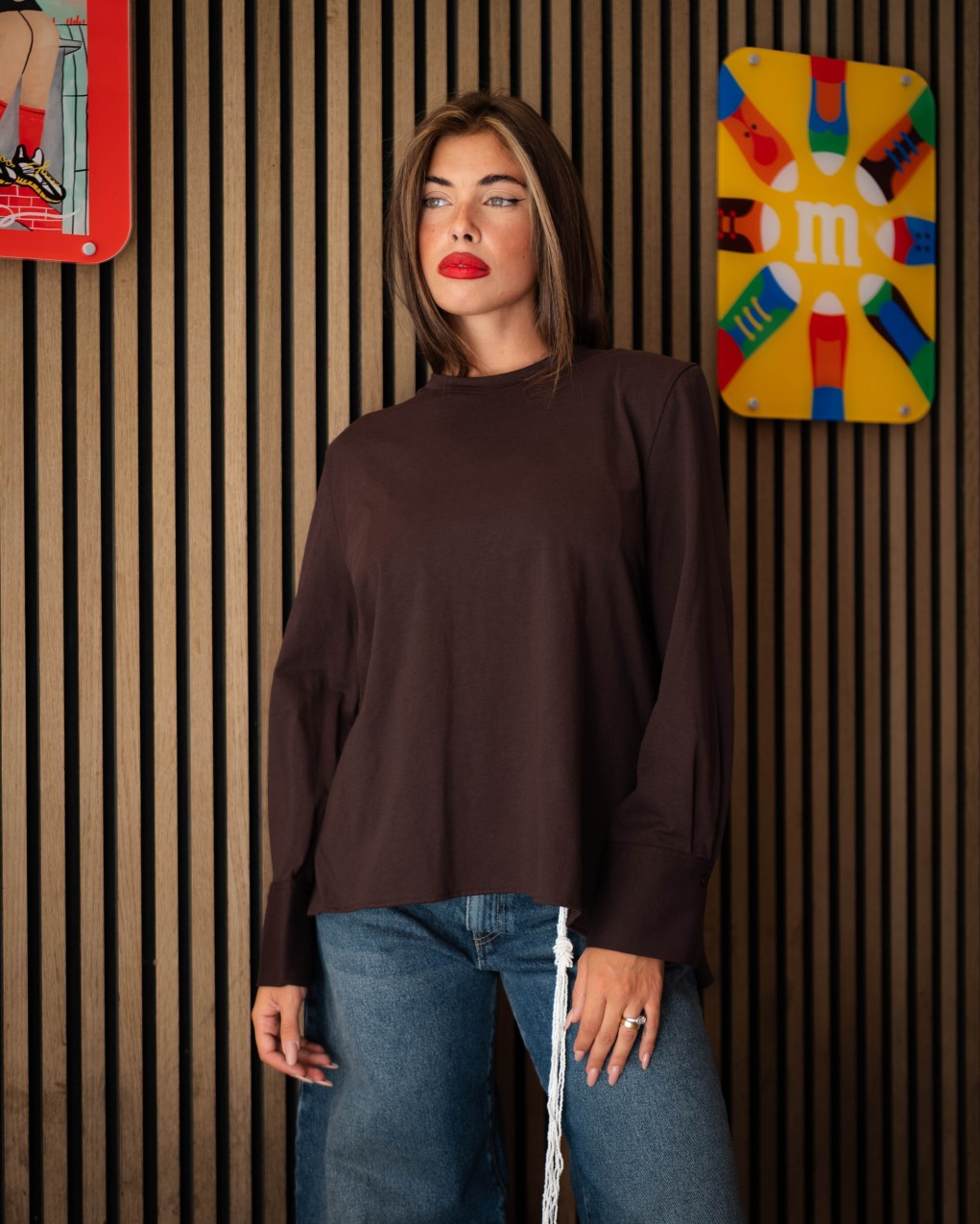 T-shirt in morbido tessuto con taglio classico e linee pulite, perfetto per look business e casual. La vestibilità regular fit garantisce comfort e libertà di movimento, mentre le maniche lunghe e la struttura leggera lo rendono ideale per tutte le stagioni. Un capo versatile che unisce raffinatezza e praticità, facilmente abbinabile sia a jeans che a capi più formali.