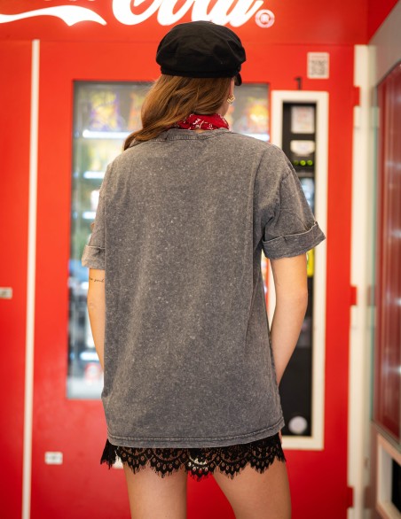 T-shirt vintage in stile rock con stampa grafica "Burning Holiday" e aquila in evidenza. Realizzata in morbido cotone con effetto stone washed per un look vissuto e autentico. Il taglio oversize offre una vestibilità comoda e versatile, perfetta per uno stile urban casual. (bandana non inclusa)