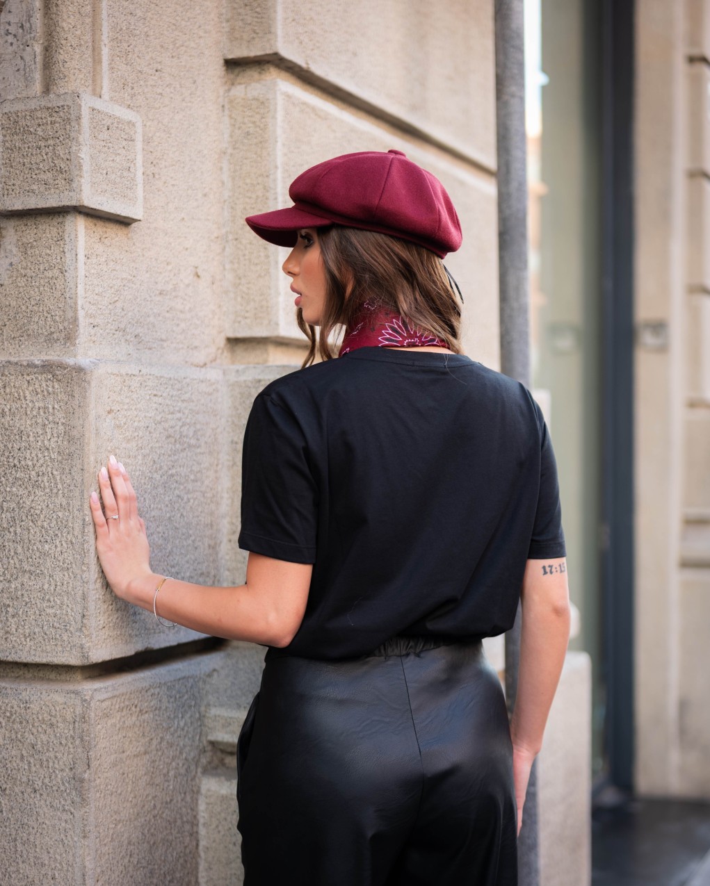 T-shirt + bandana in morbido cotone dalla vestibilità rilassata, perfetta per look urban-chic. Il taglio dritto e la lunghezza media si adattano a diverse silhouette, mentre il tessuto di alta qualità garantisce comfort e durevolezza. Ideale per essere abbinata sia a pantaloni casual che gonne, questa t-shirt rappresenta un capo essenziale dal design minimal e versatile.
