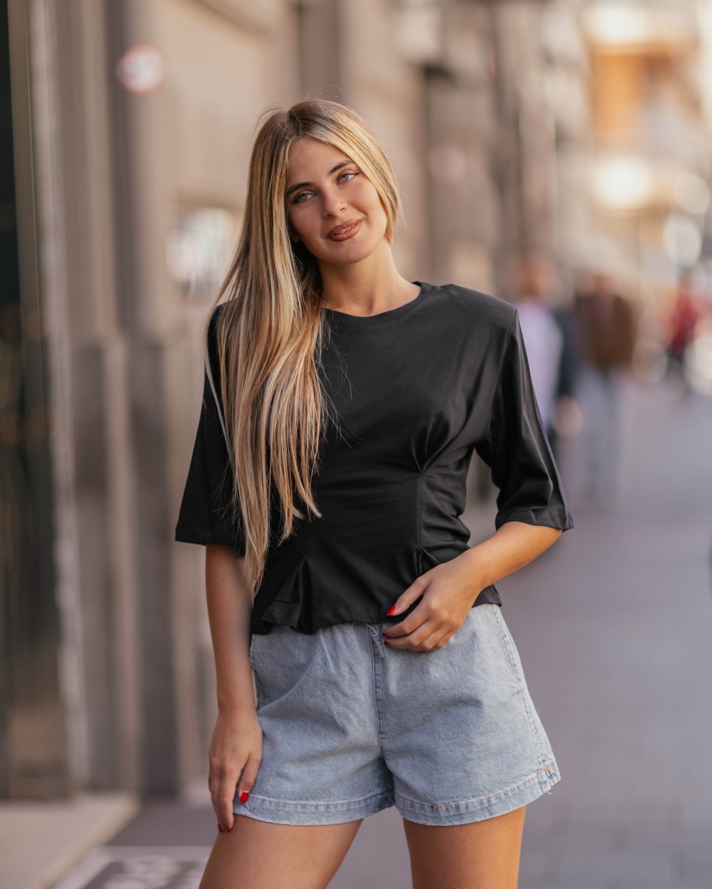 Maglia donna con spalline e maniche tre quarti dallo stile casual e versatile, perfetta per il tempo libero e l'uso quotidiano. Realizzata in tessuto morbido e confortevole, presenta girocollo classico e dettaglio drappeggiato sul davanti che aggiunge movimento e carattere al capo. La vestibilità è regolare e comoda, con maniche ampie che garantiscono libertà di movimento. Ideale da abbinare a jeans, pantaloni o shorts per un look rilassato ma curato.