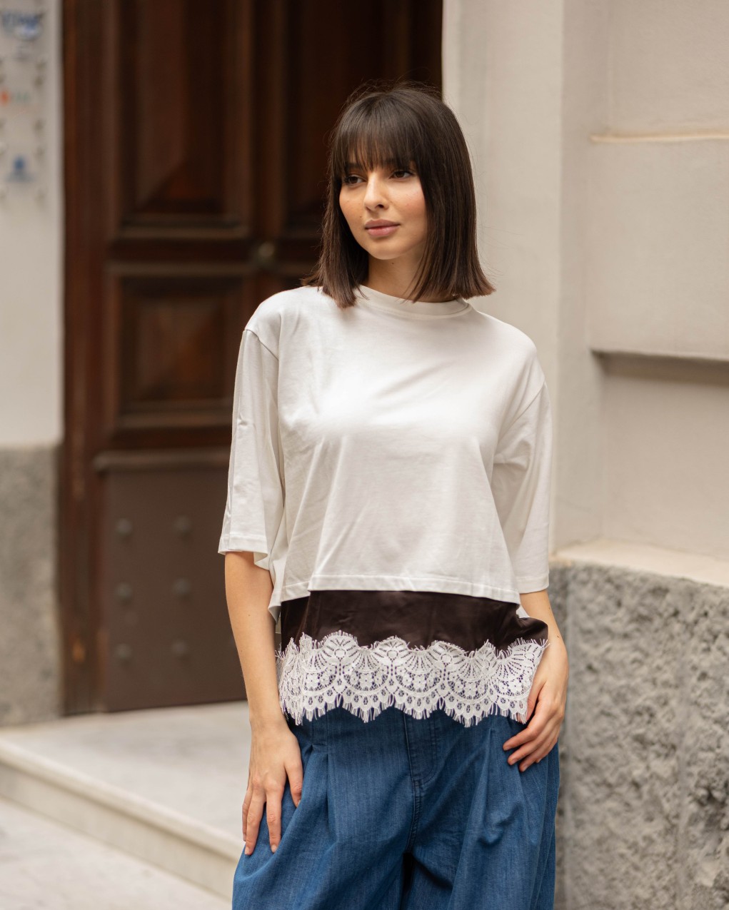 VICOLO TSHIRT DOPPIO PIZZO GIU