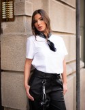 Elegante mini abito con design a due volumi: corpetto aderente a maniche lunghe e gonna a balze sovrapposte. Realizzato in morbido tessuto elasticizzato per la parte superiore e tessuto strutturato per la gonna, garantisce una vestibilità avvolgente che esalta la silhouette.