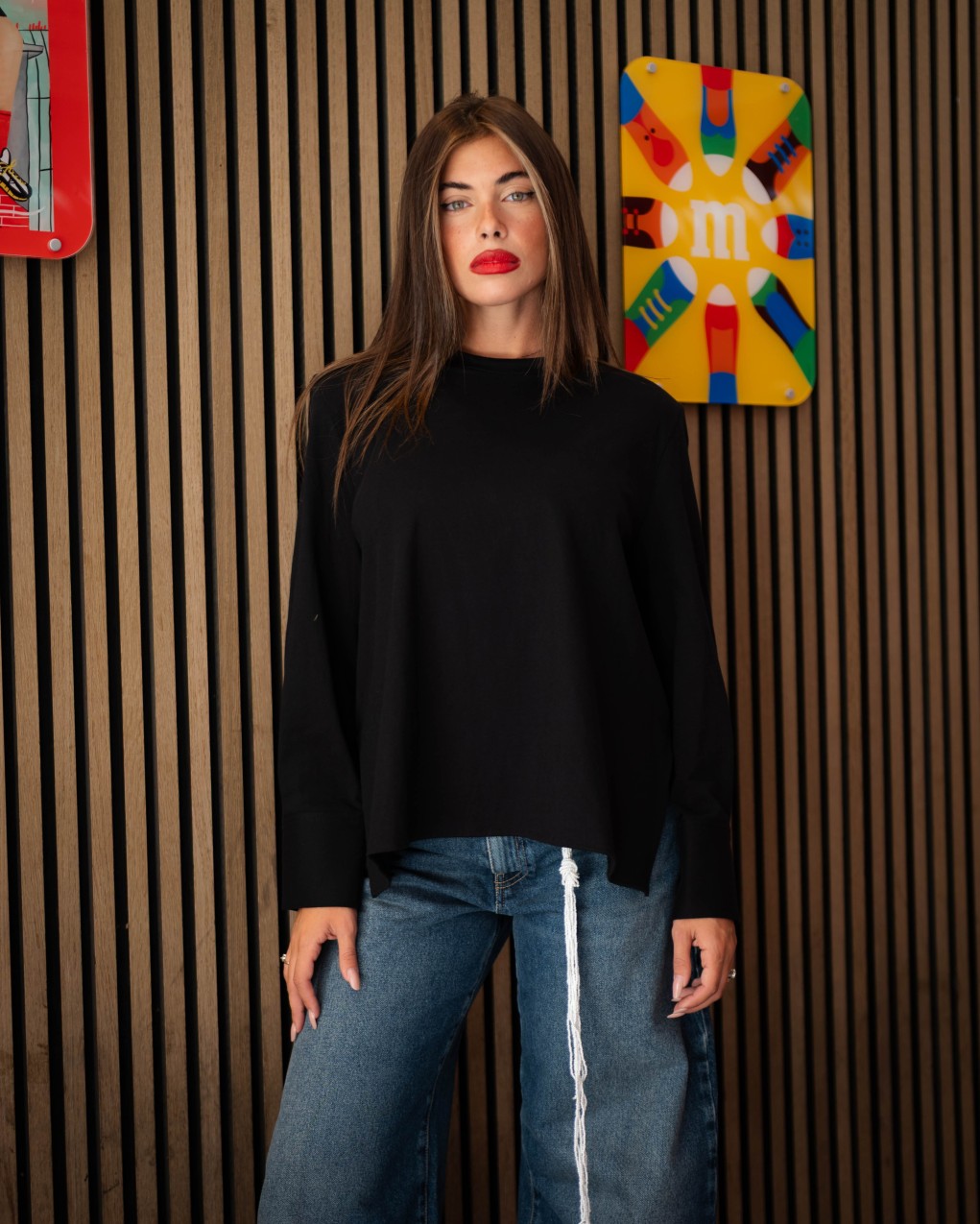 T-shirt in morbido tessuto con taglio classico e linee pulite, perfetto per look business e casual. La vestibilità regular fit garantisce comfort e libertà di movimento, mentre le maniche lunghe e la struttura leggera lo rendono ideale per tutte le stagioni. Un capo versatile che unisce raffinatezza e praticità, facilmente abbinabile sia a jeans che a capi più formali.
